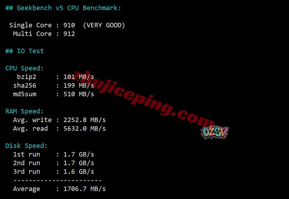 当前VPS的大致性能判断,部分数据测试结果如下: