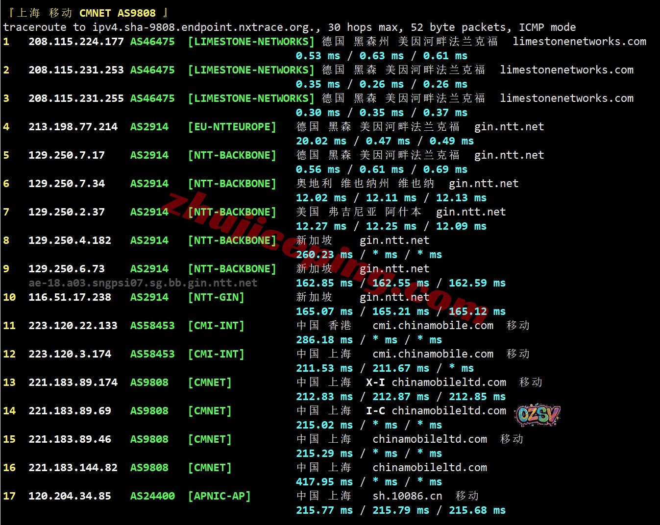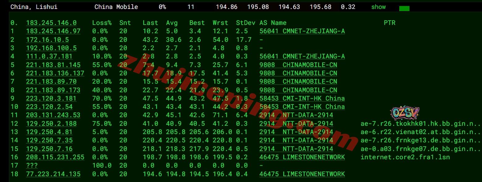 移动去程:从移动香港CMI转NTT去维也纳、德国