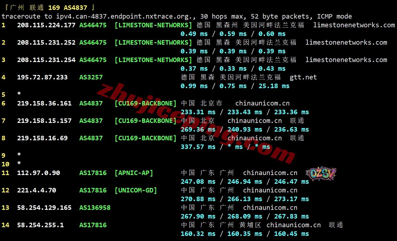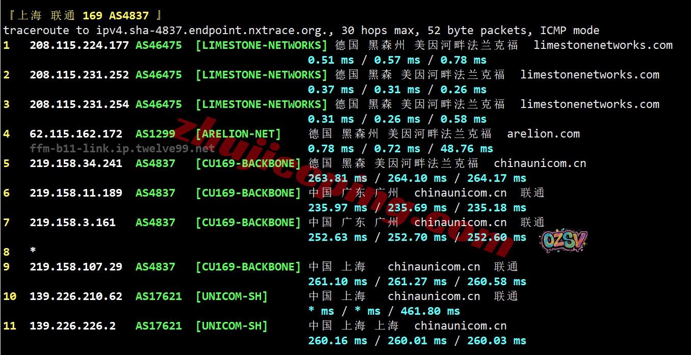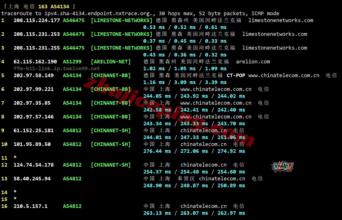 上海方向:走telia接联通德国法兰克福节点后直连回国