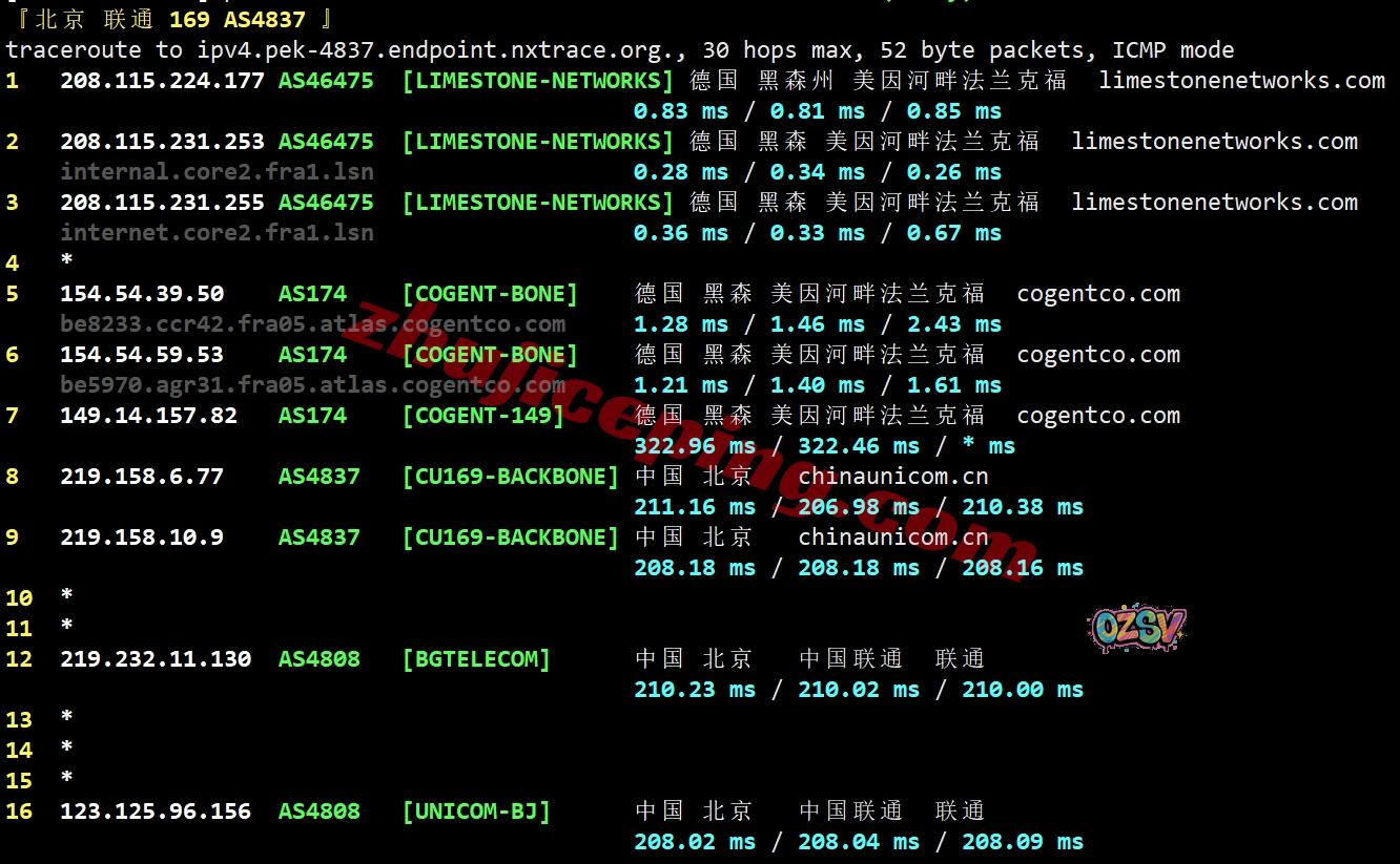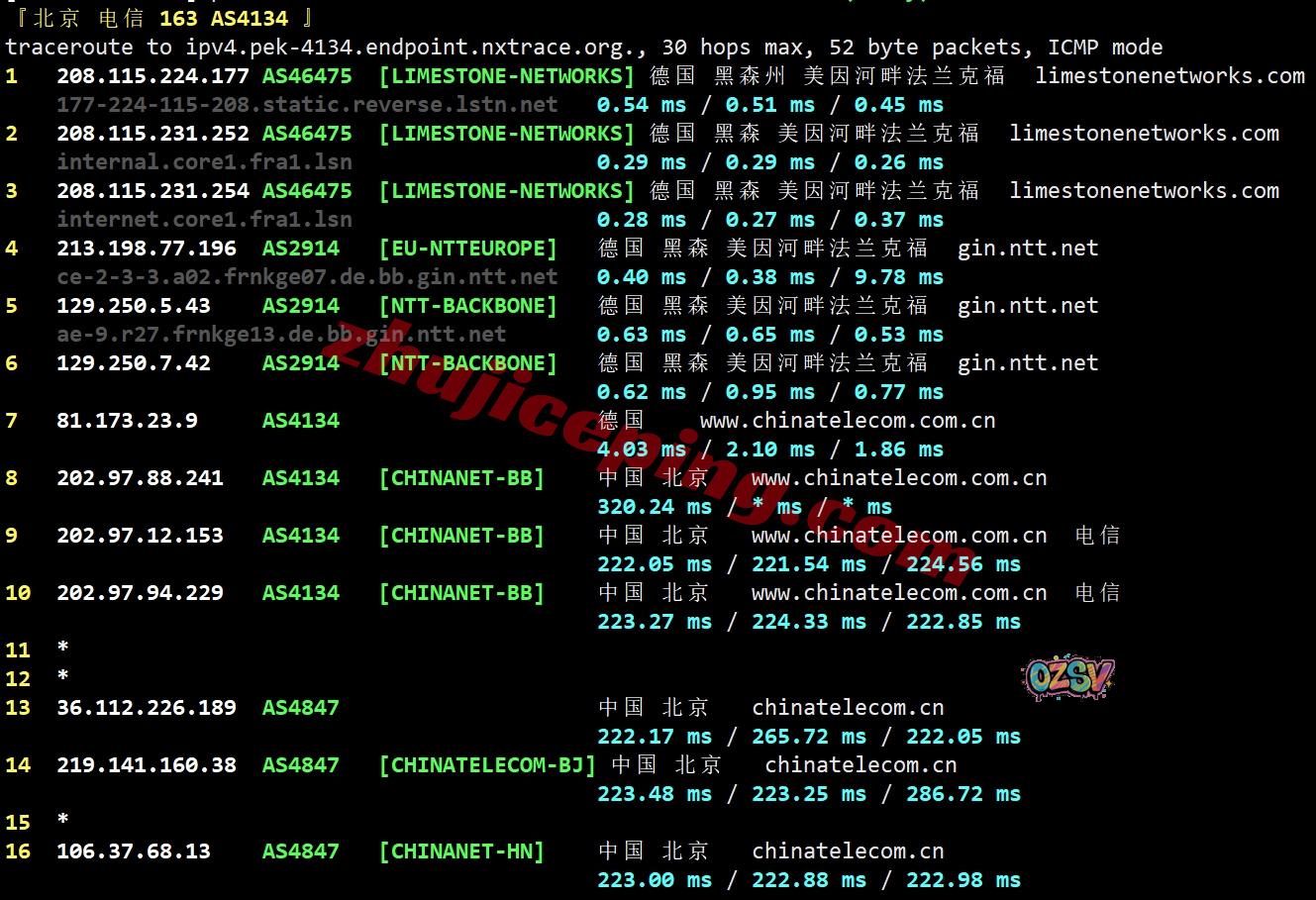 北京、上海方向:德国机房直接是NTT/telia转电信德国节点直连回国