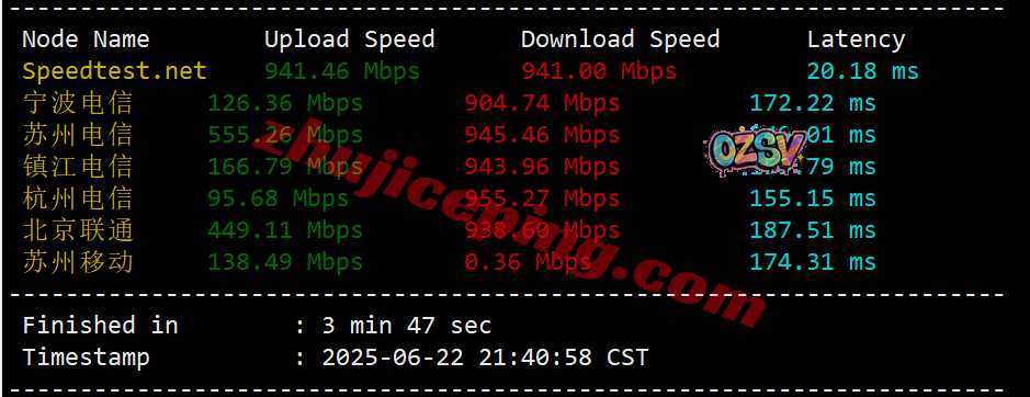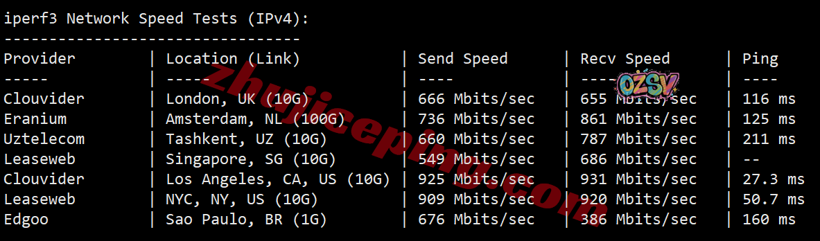 iperf3,IPv6环境下几个热门节点的测试数据: