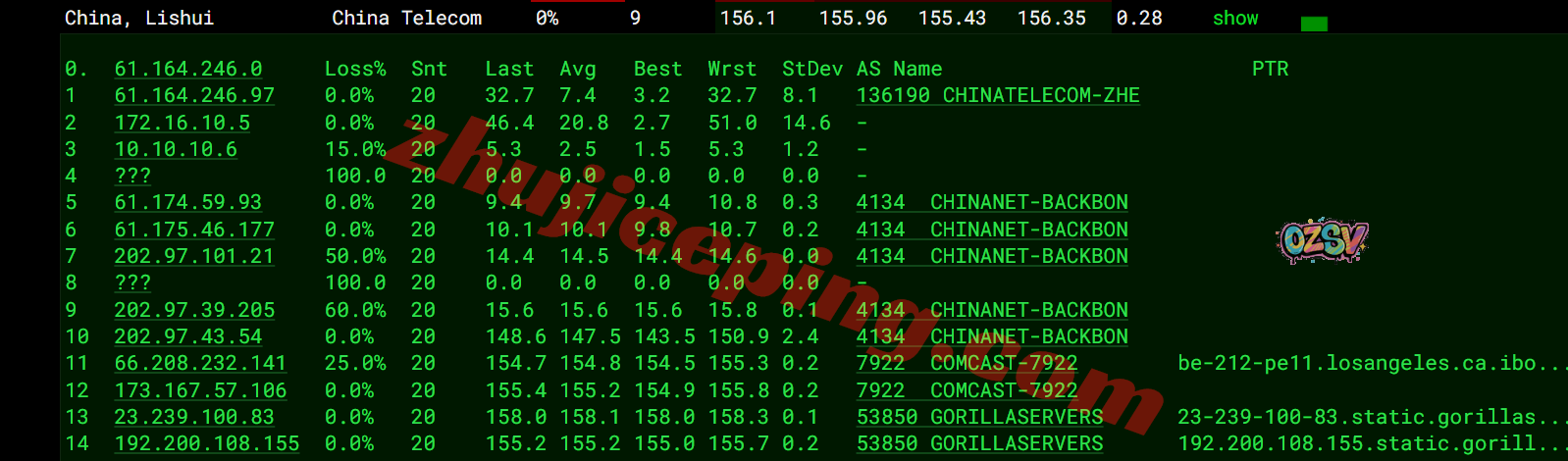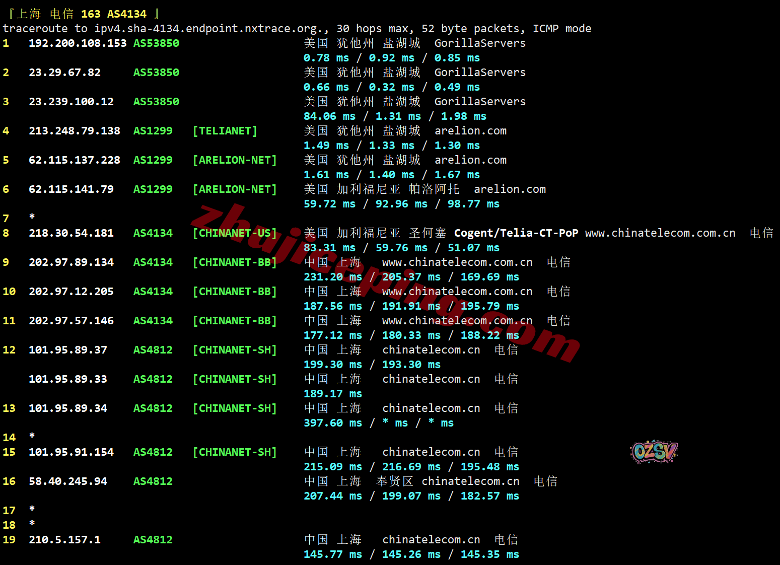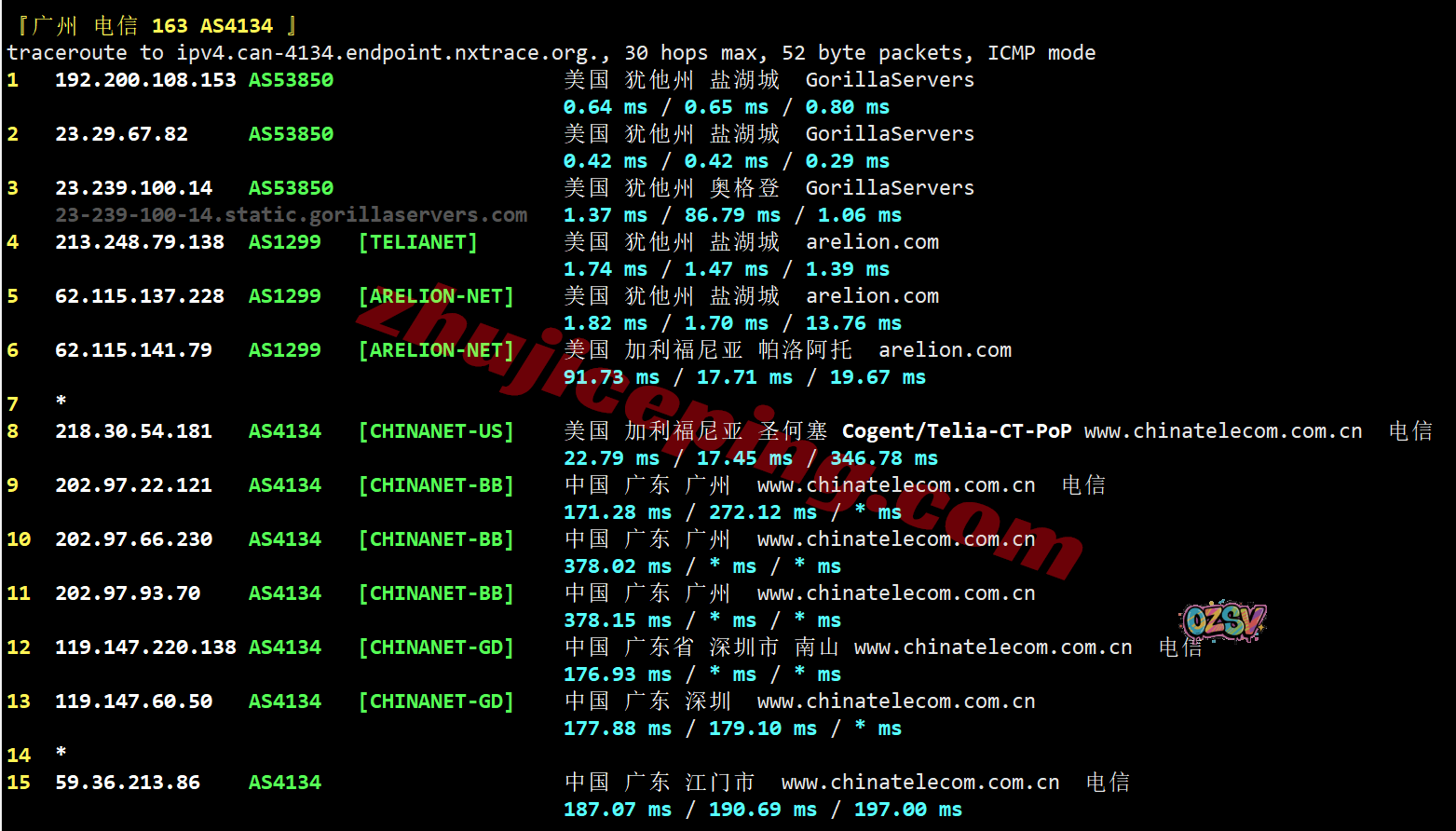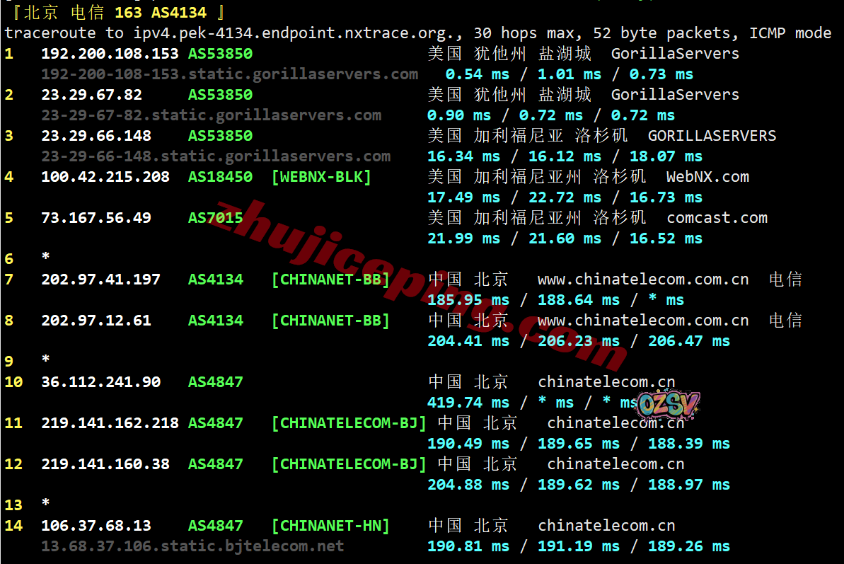 电信去程:直连电信美国洛杉矶节点然后转Comcast去犹他州奥格登机房