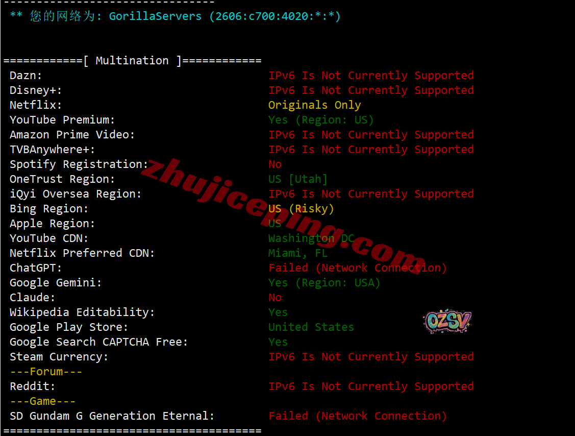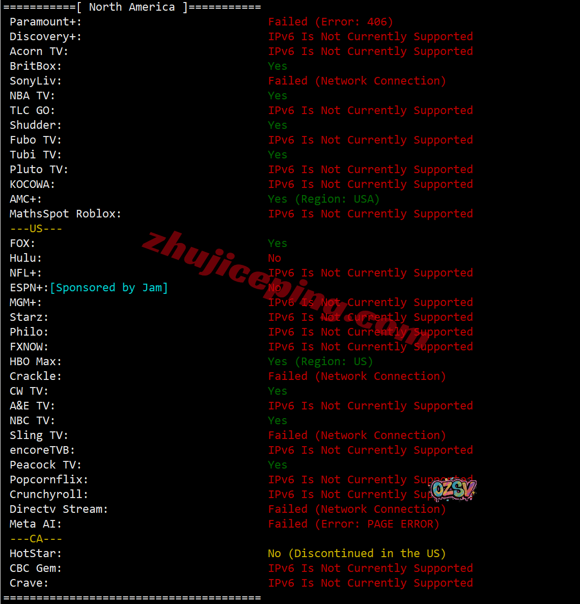 IPv6环境下部分流媒体解锁测试,大致结果: