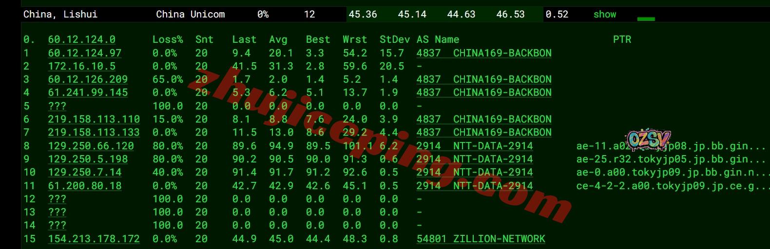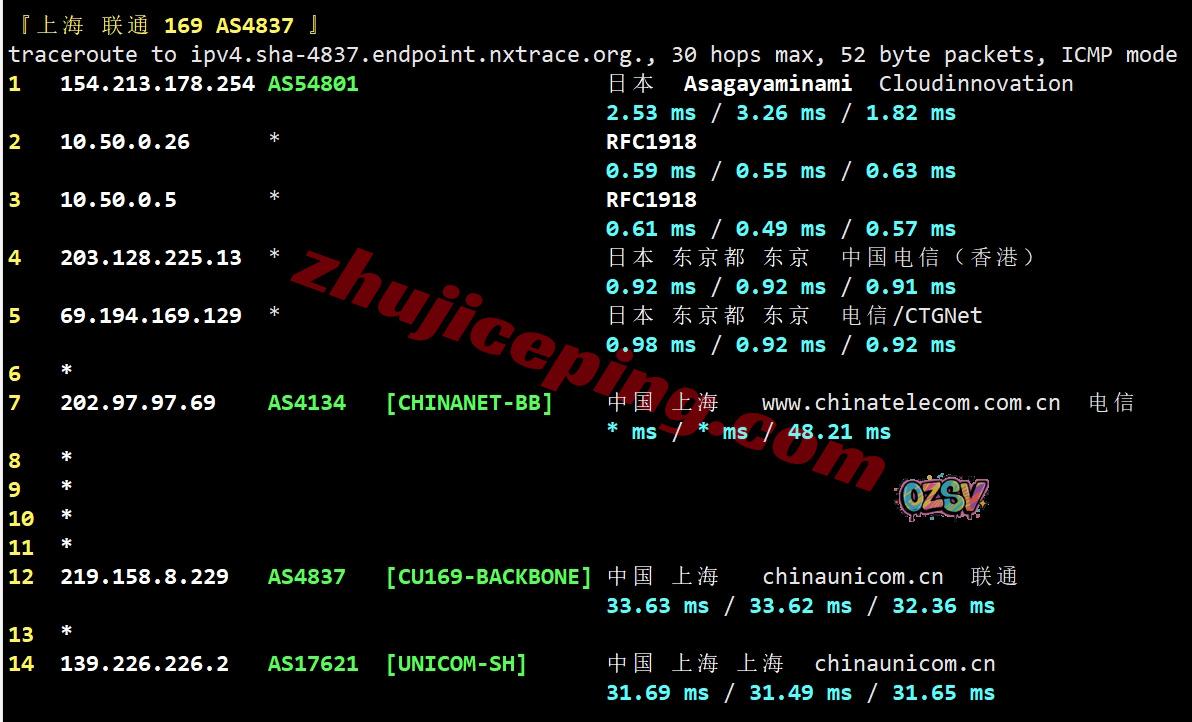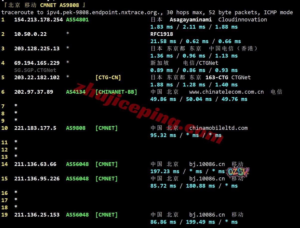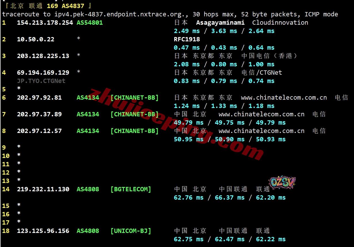 网络方面,去程:电信和移动是直连,联通骨干网接NTT去日本;