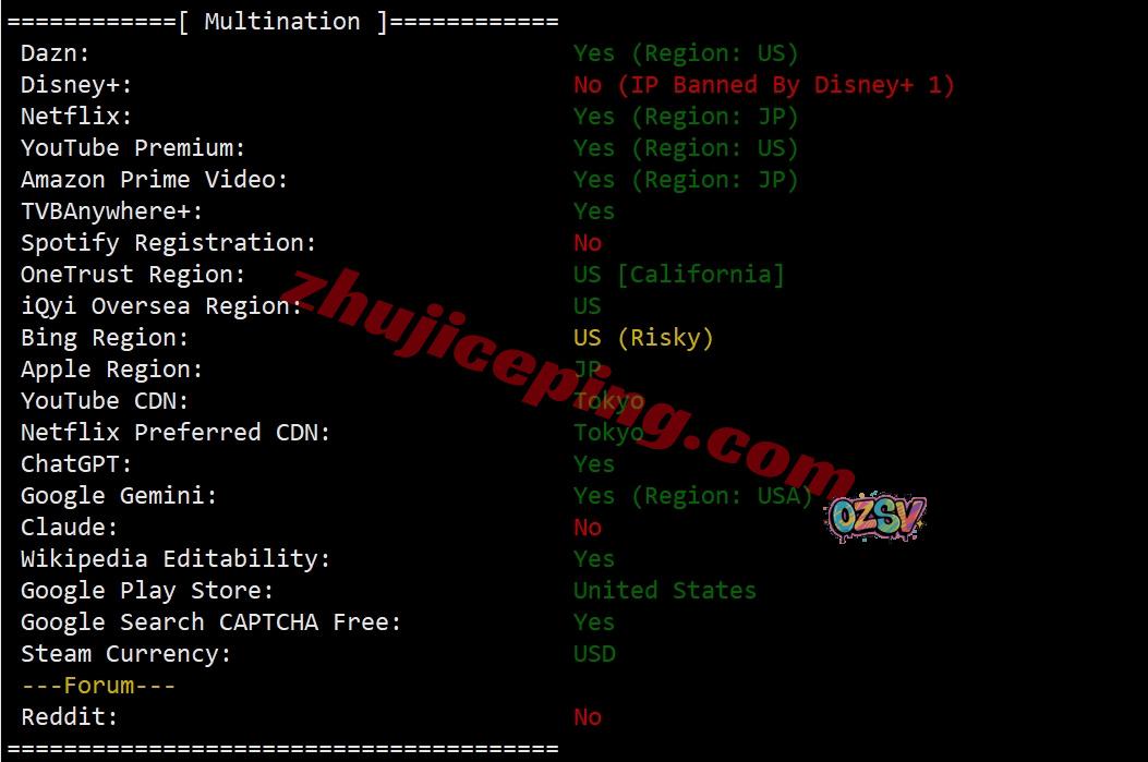 回程,三网强制都走电信CTG直连回国,速度还是蛮不错的。