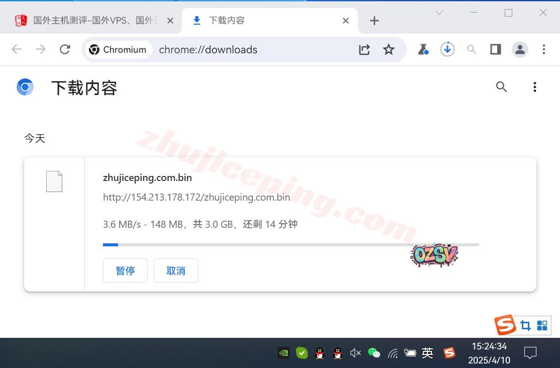 存放在测试的云服务器上的文件,广州联通家宽用Chrome下载该文件,大致的下载速度如下: