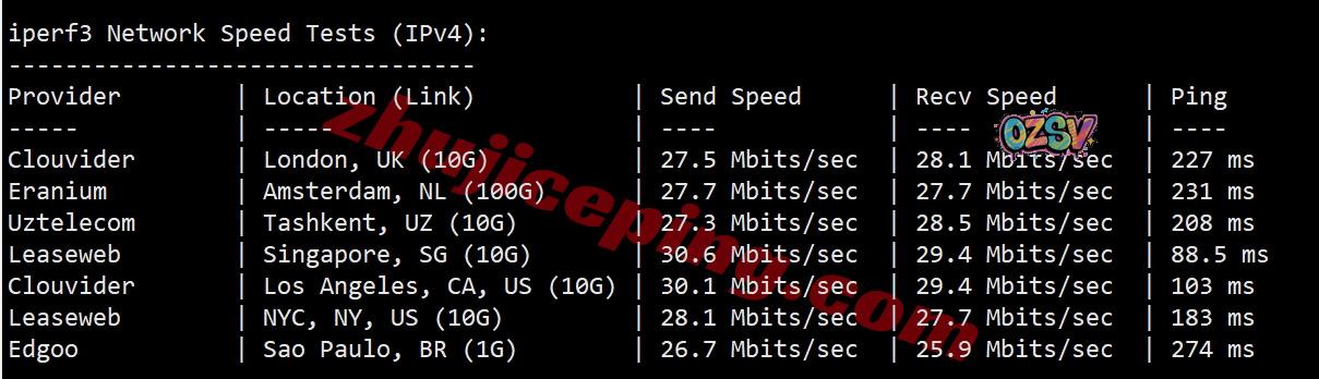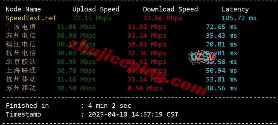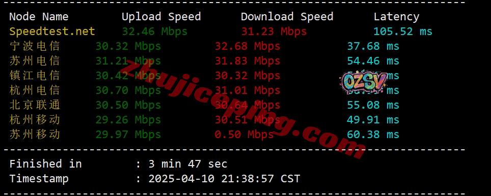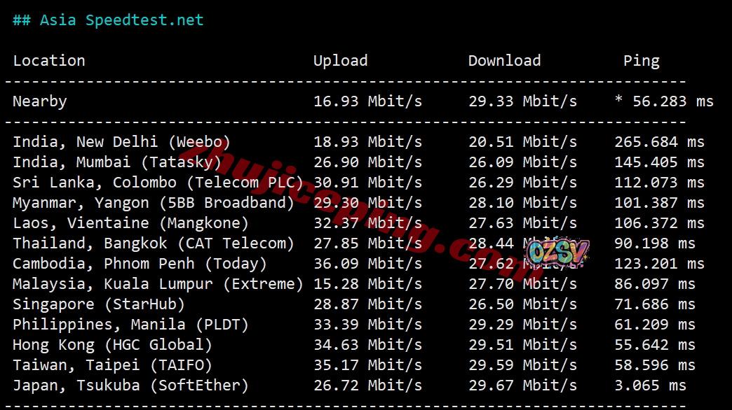 speedtest.Net的亚洲境内的测试节点,大致数据如下:
