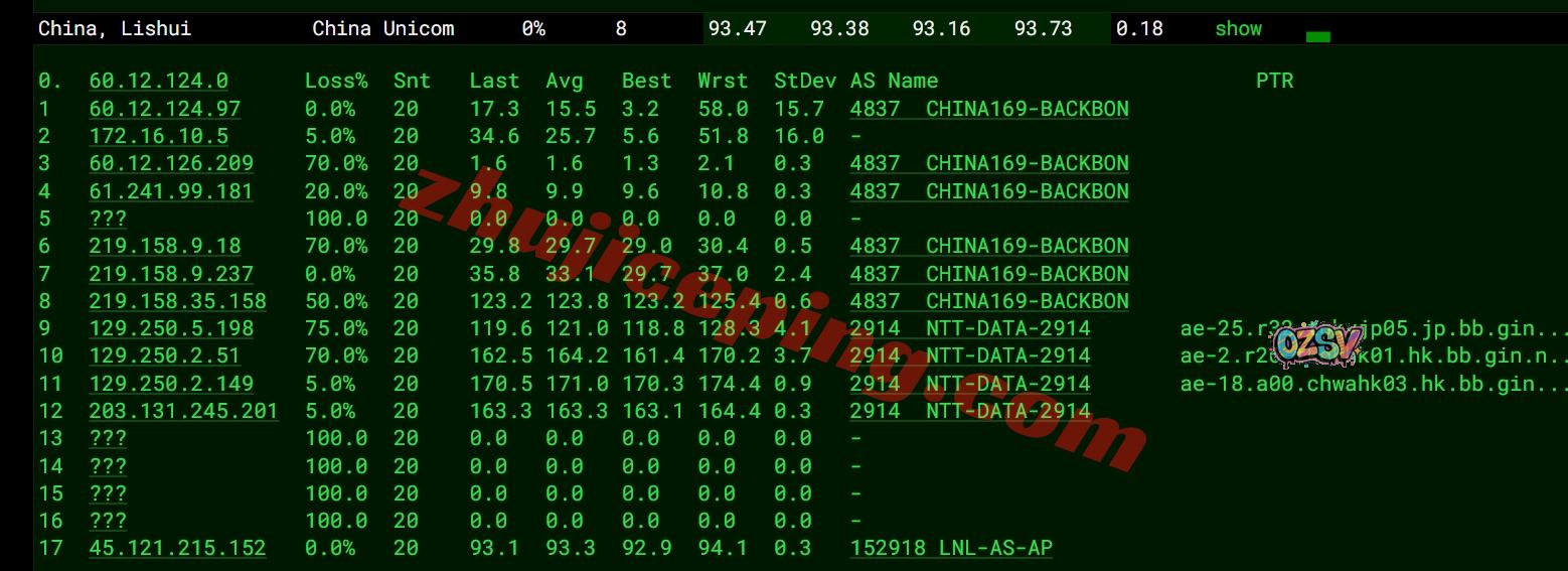 联通去程:联通骨干直连日本然后接NTT再去香港