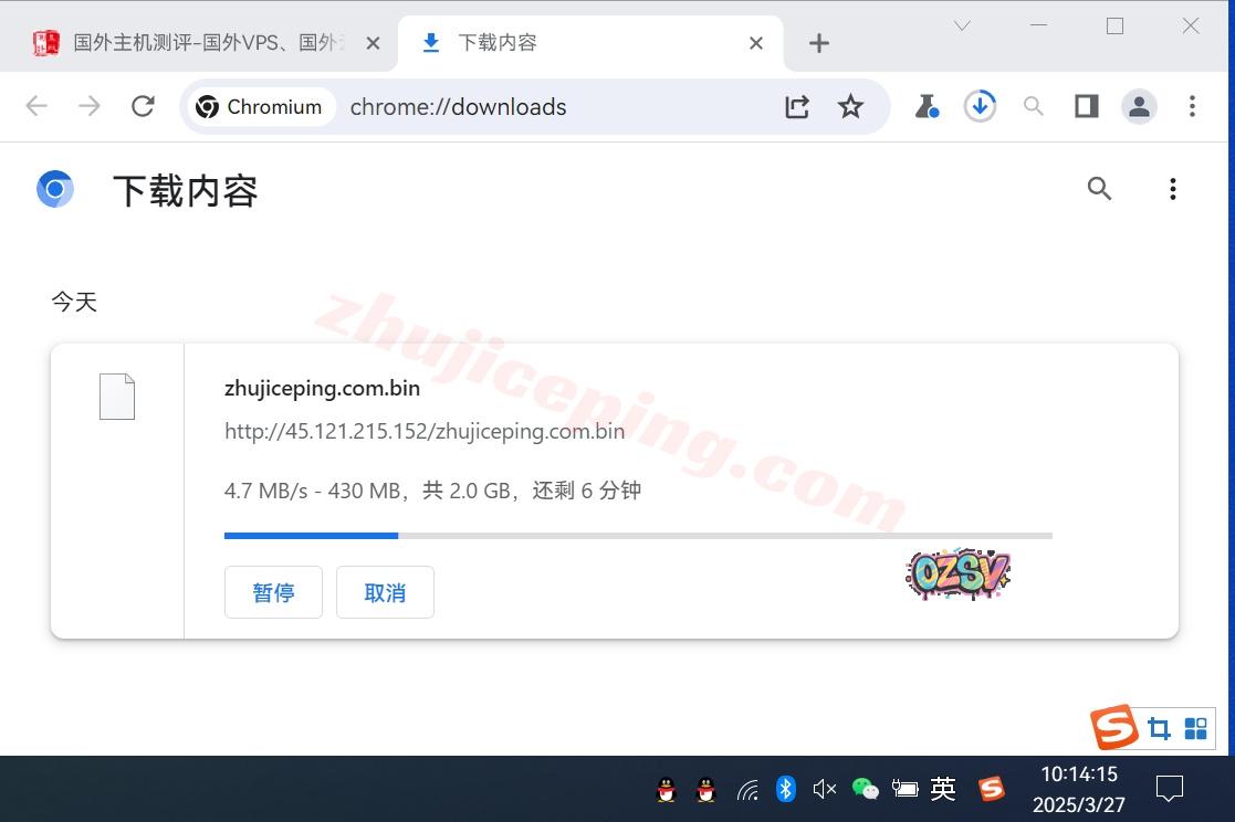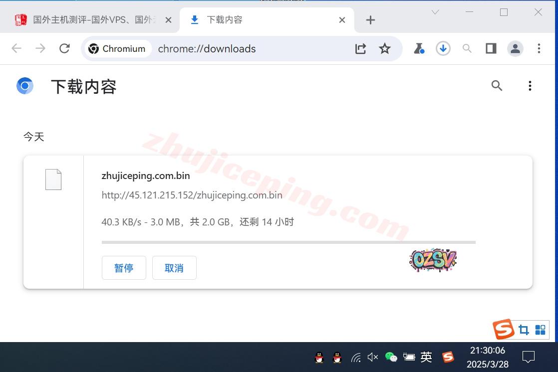 存放在测试VPS上的文件,广州联通家宽直接用Chrome下载该文件,大致的下载速度如下: