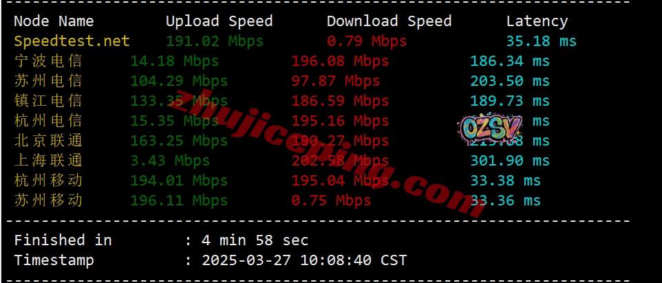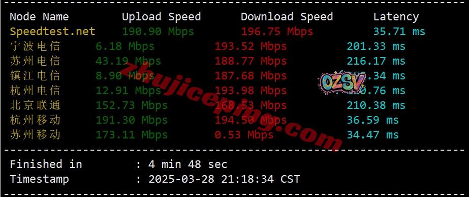 境内三网多节点的带宽上下行测试数据如下: