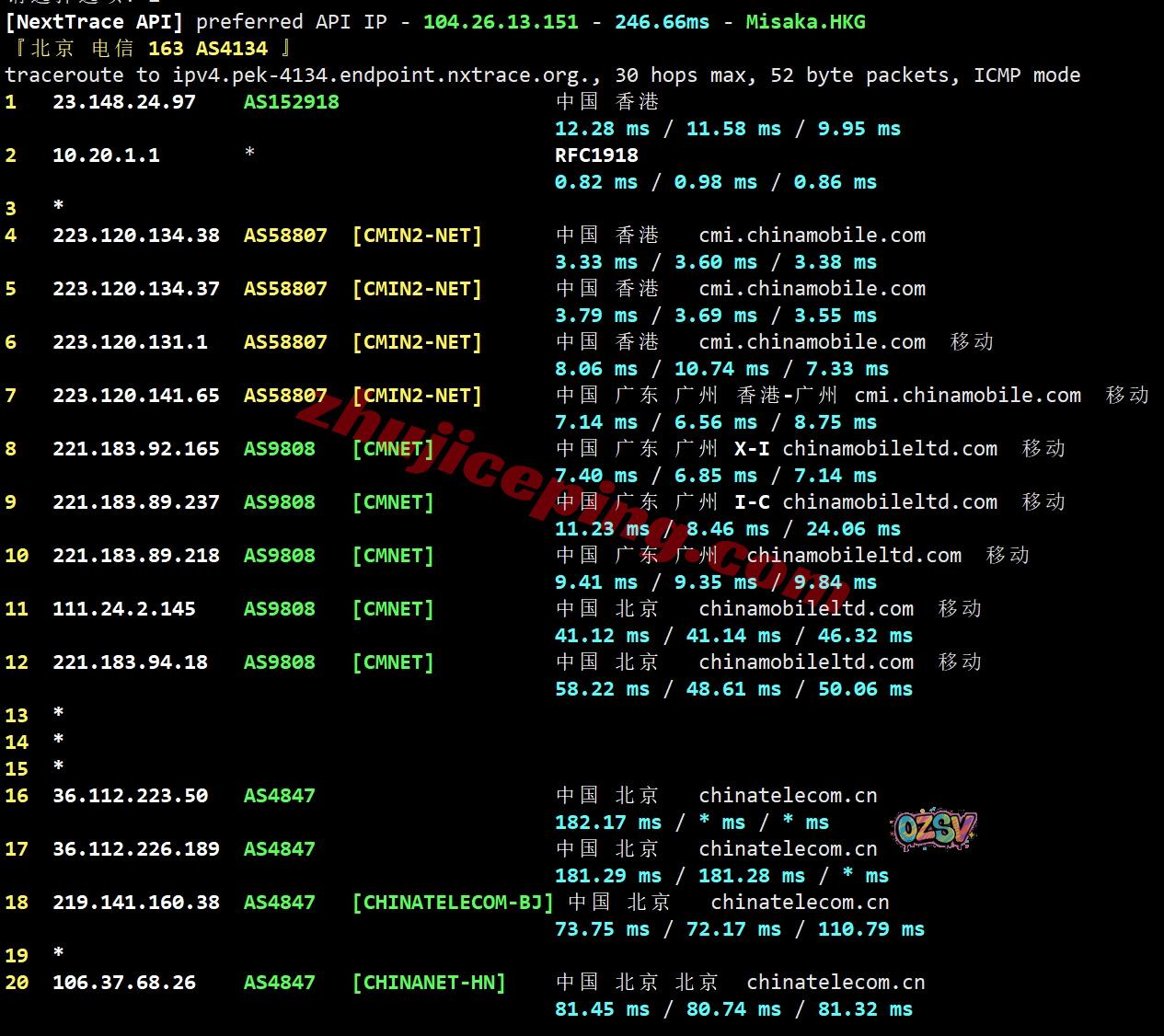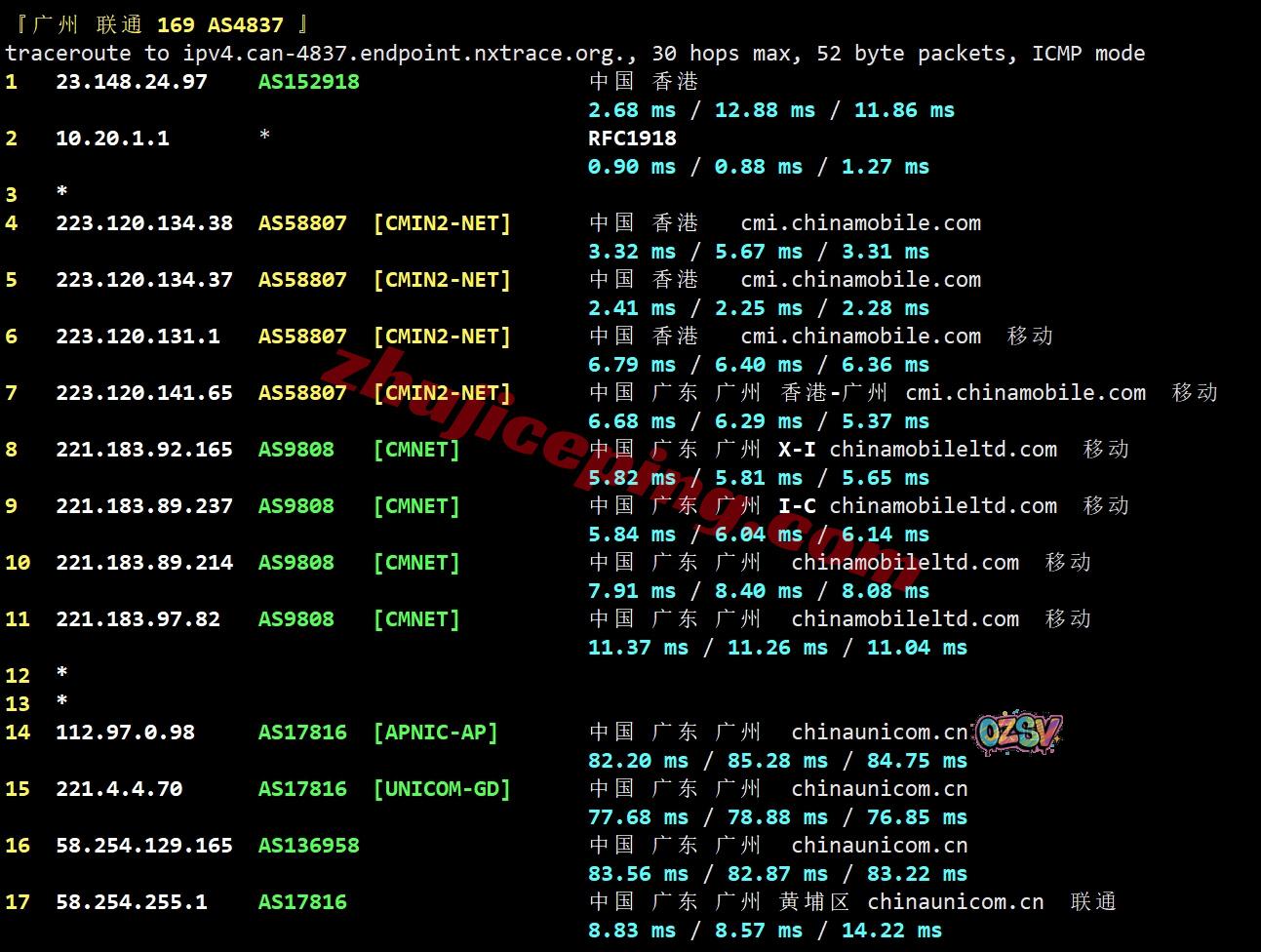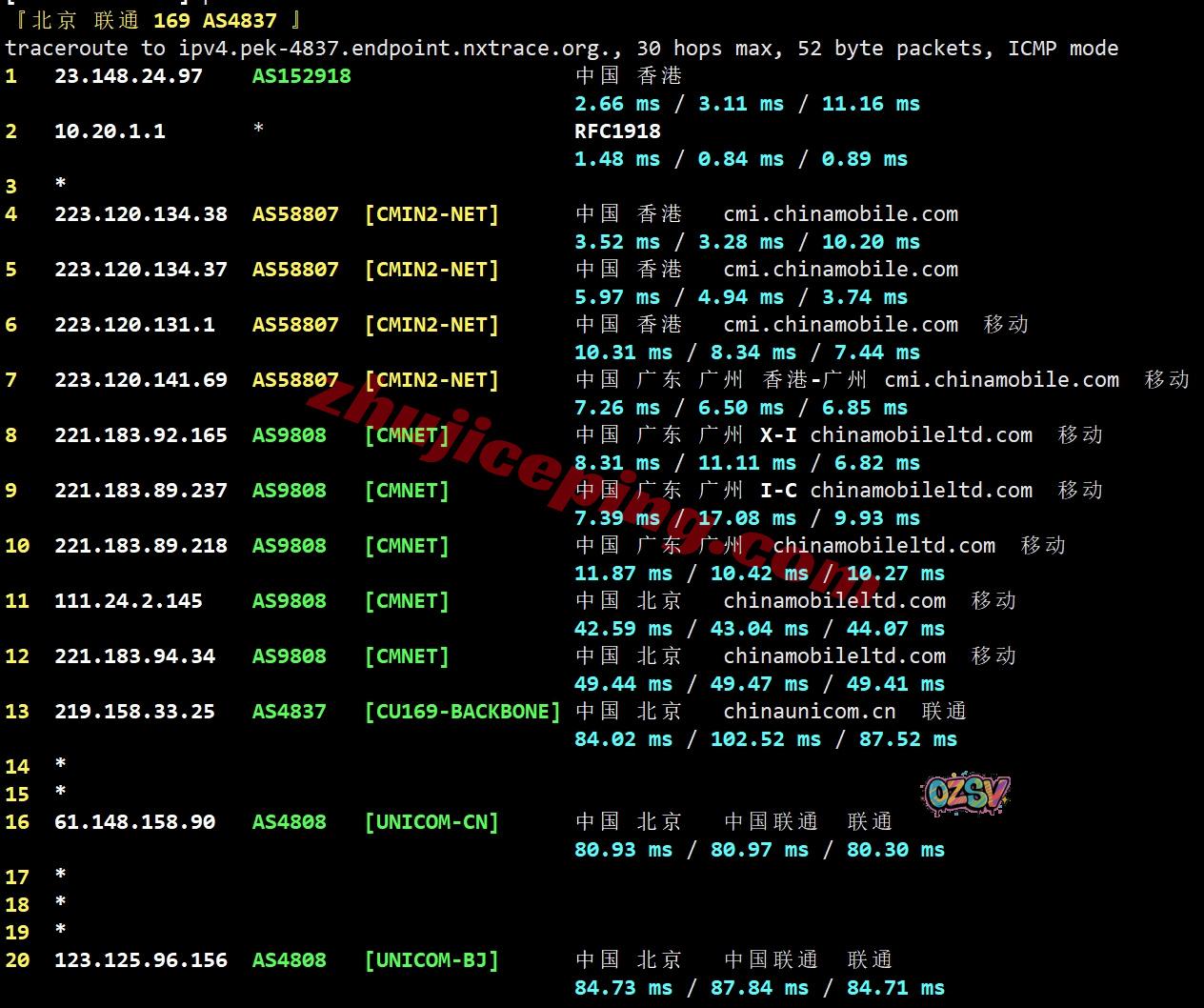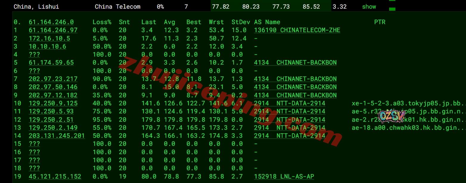 网络的情况:电信和联通都是走NTT先去日本然后回香港,移动去程是直连;