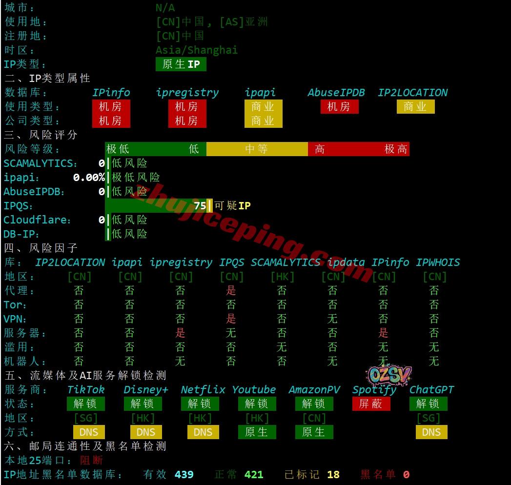 多个数据库对IP的大致判断,目前来看是香港原生IP: