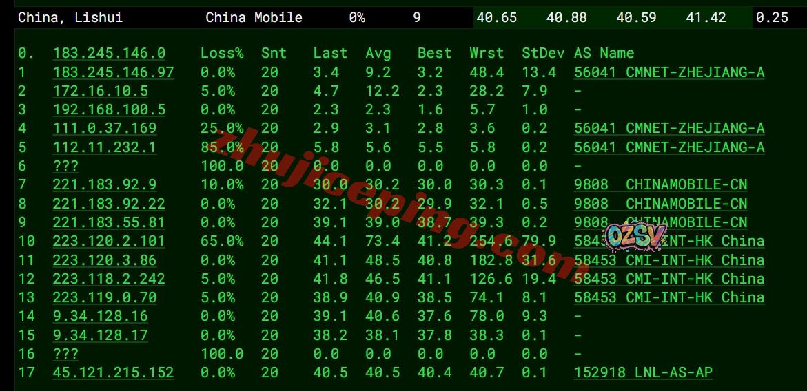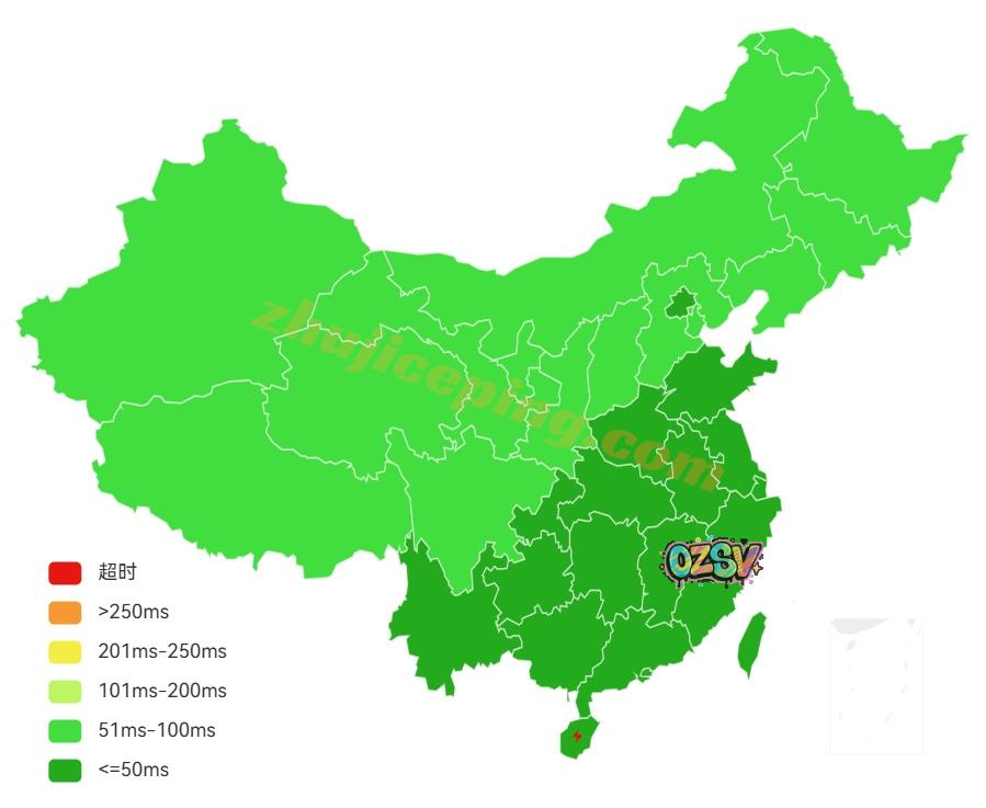境内三网多节点的延迟测试数据: