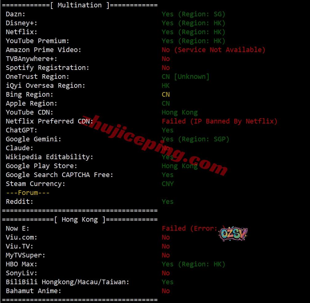 部分流媒体解锁测试结果: