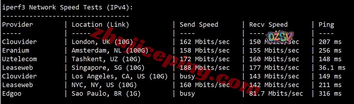iperf3,几个国际节点的测试数据: