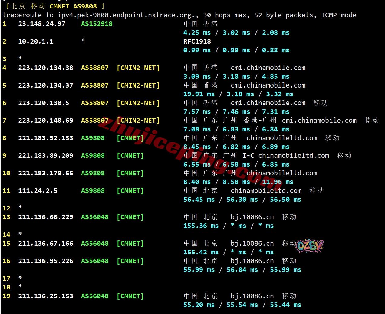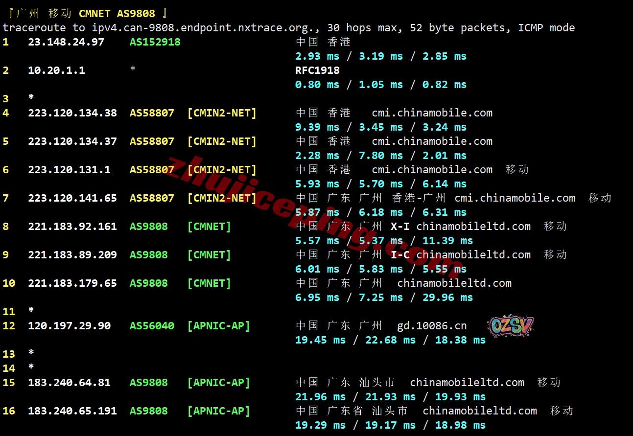 移动回程:走移动自己CMI直连回内地