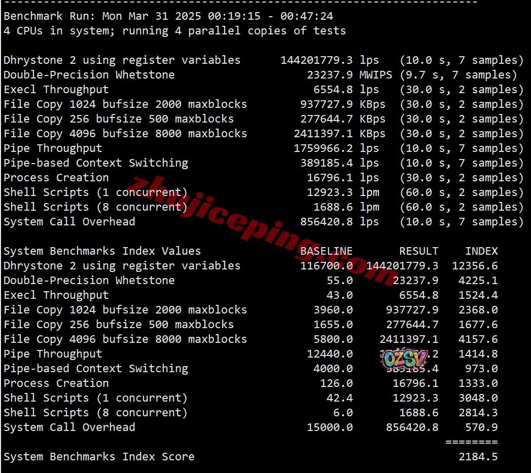VPS性能测试,部分测试数据如下: