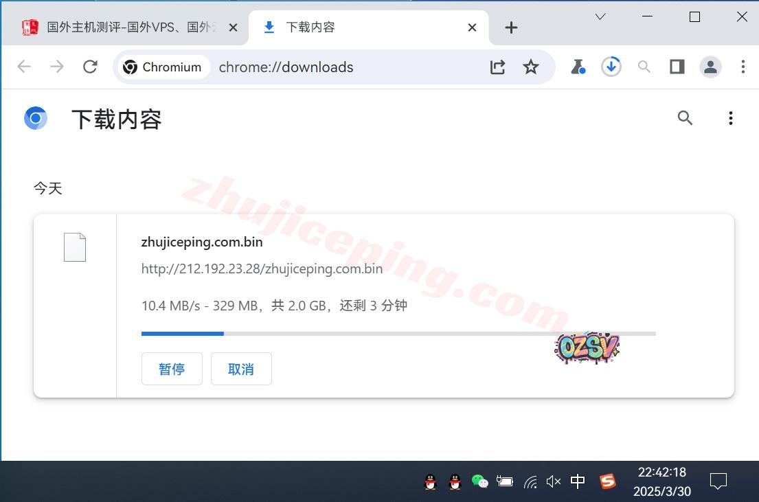 存放在测试VPS上的文件,广州联通家宽直接用Chrome下载该文件,大致的下载速度如下: