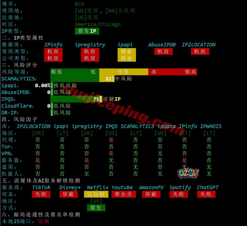 多个数据库对当前VPS的IP的大致判断,美国原生IP…