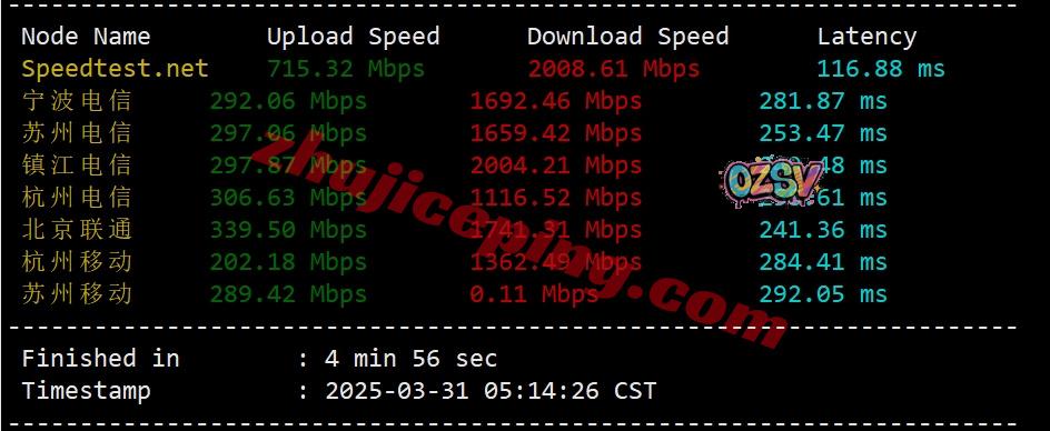 国内三网多节点的带宽上下行测试数据: