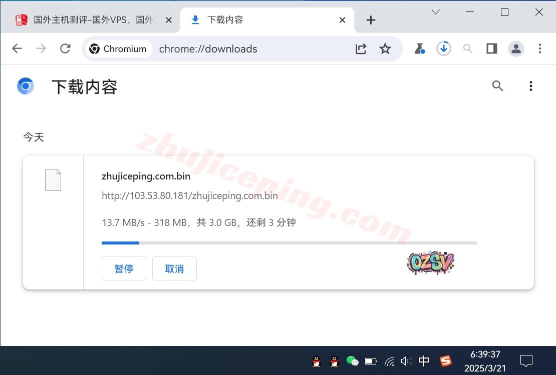 存放在测试VPS上的文件,广州联通家宽直接用Chrome下载,大致的下载速度如下: