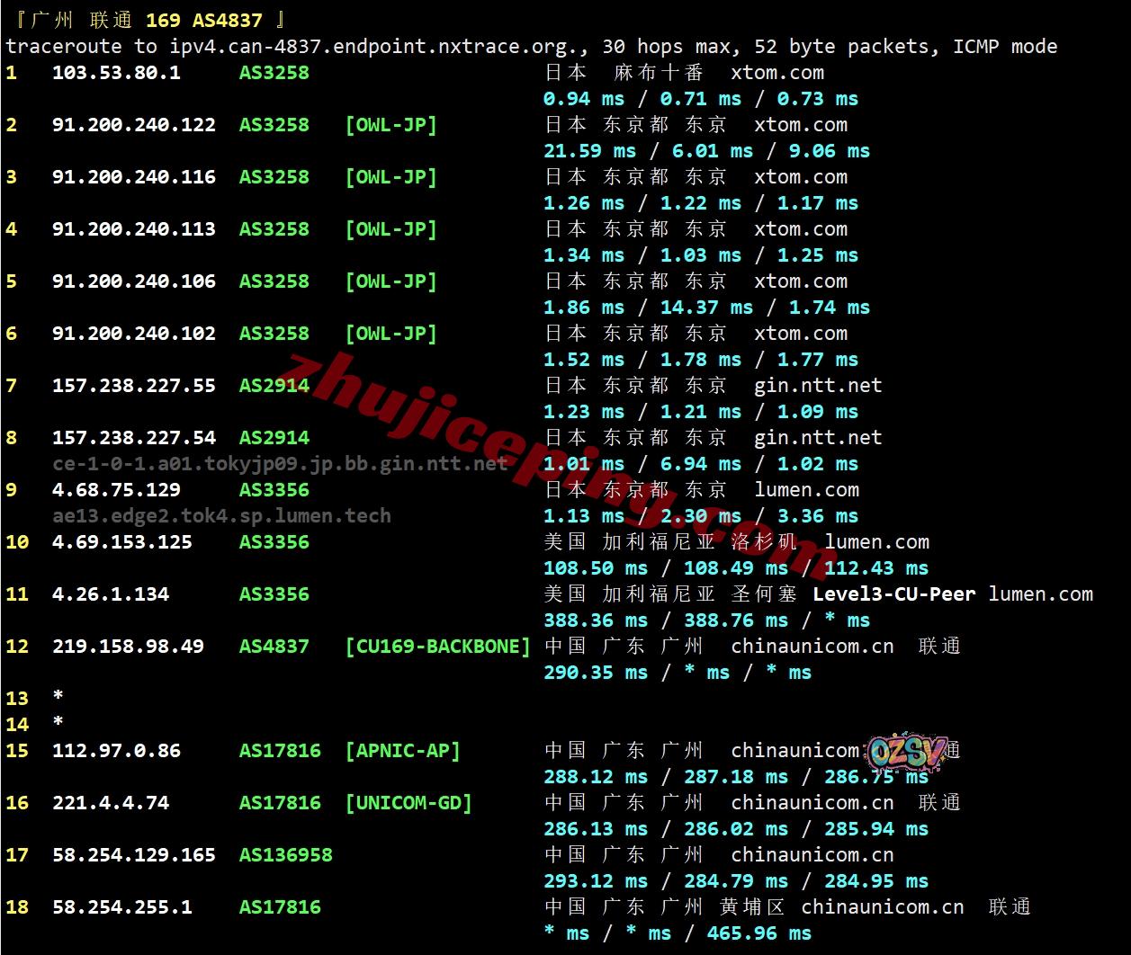 广州方向:走NTT从东京转lumen去美国圣何塞,从联通与lumen在圣何塞的peer出来回国