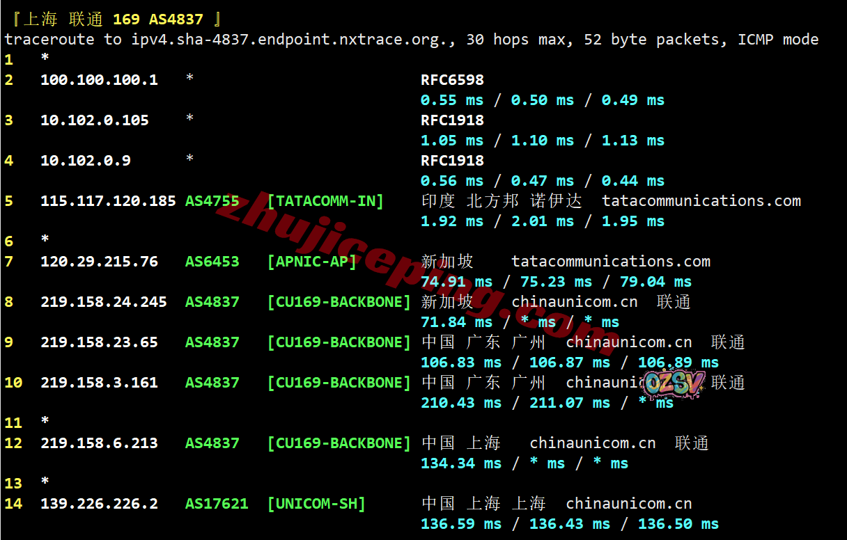 北京、上海方向:走TATA去新加坡,然后从联通新加坡节点直连回国