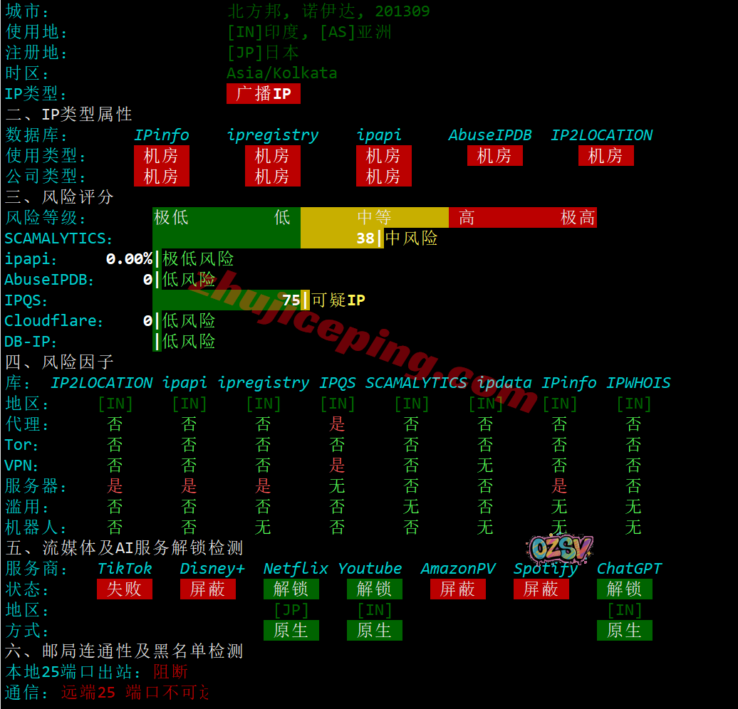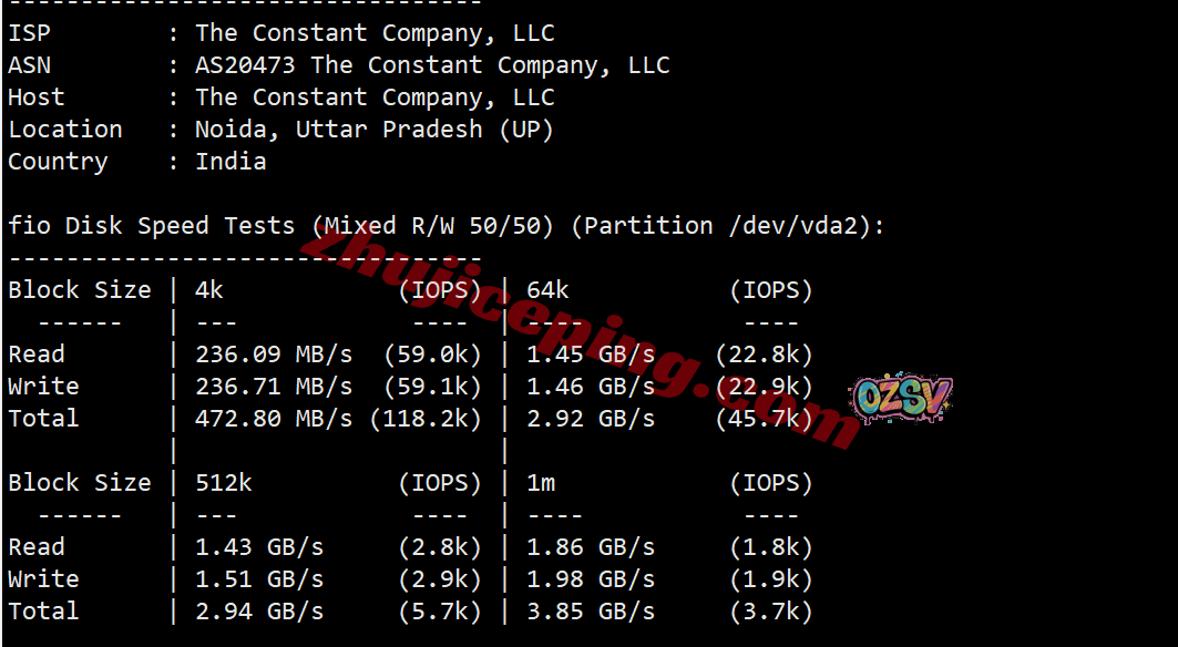CPU属EPYC Rome系列,具体型号未知,主频1996.250MHz,站长开启了BBR,底层KVM虚拟,支持IPv4&v6,上游为Vultr的母公司the constant company,归属地 Dadri是印度北方邦(Uttar Pradesh)的乔达摩菩提那加尔地区(Gautam Buddha Nagar District)的首府,当前I/O测试大致为716B/S: