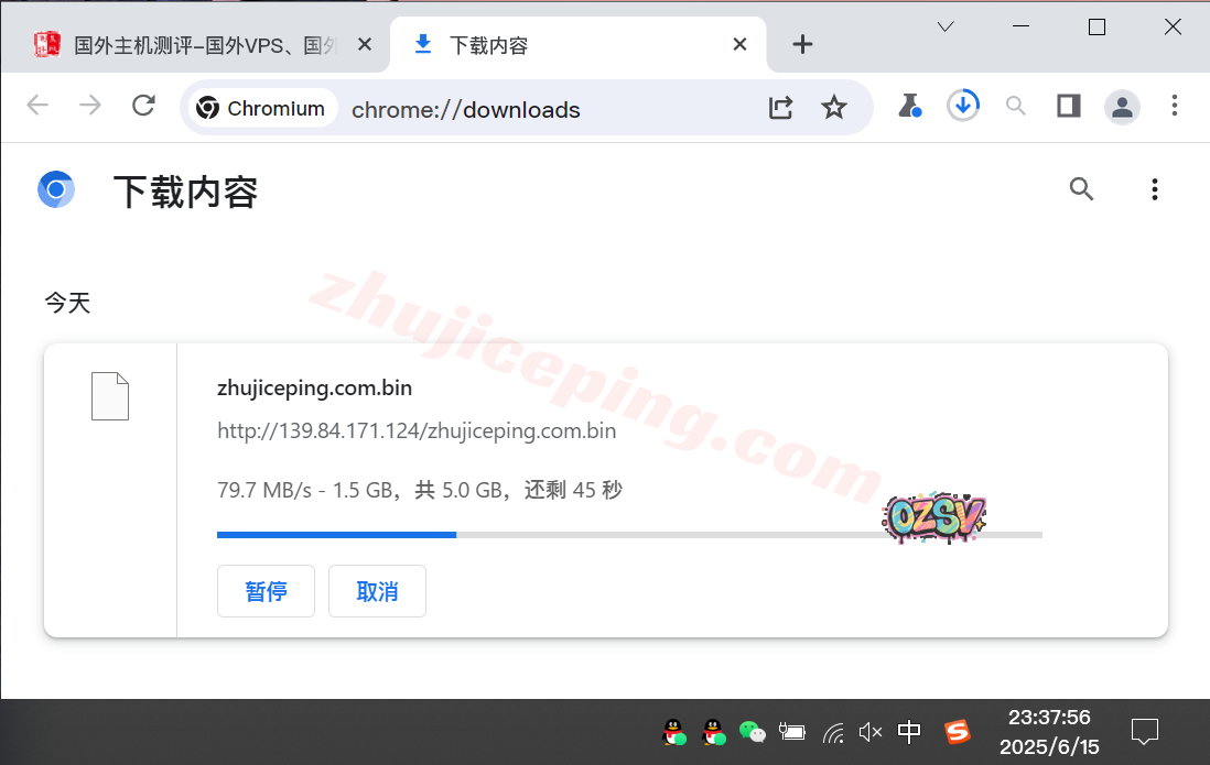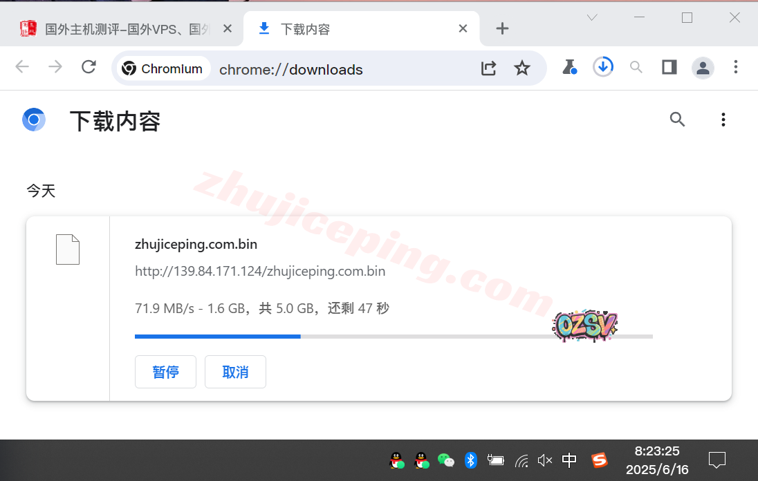 存放在测试云服务器上的文件,站长广州联通家宽直接用Chrome下载该文件,大致的下载速度如下: