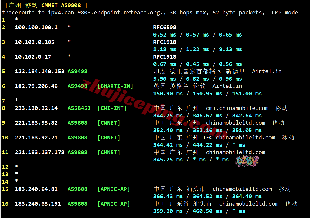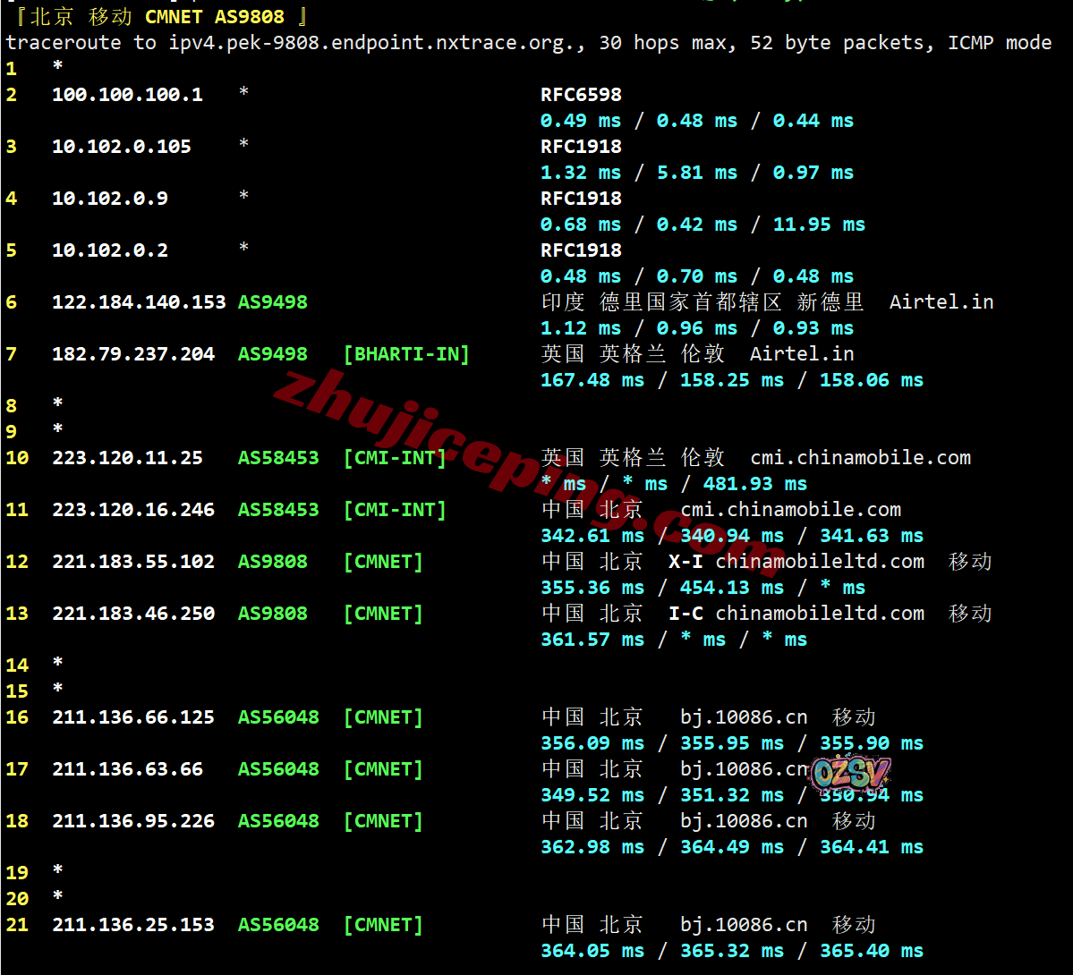 移动回程:走airtel先去英国,然后从移动伦敦CMI节点直连回国