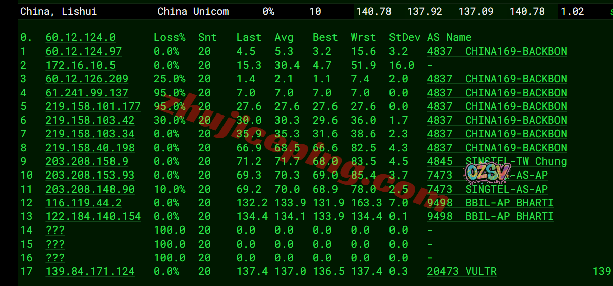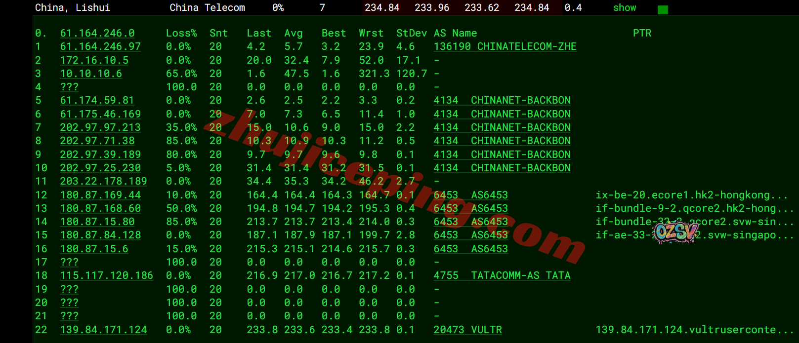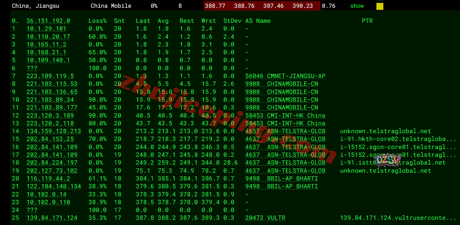 移动去程:直连香港然后接Telstra去新加坡然后去印度