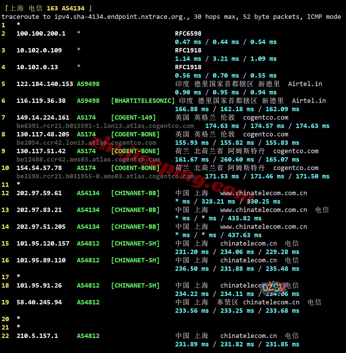 上海方向:走airtel出海去英国接cogent去荷兰然后出海回国