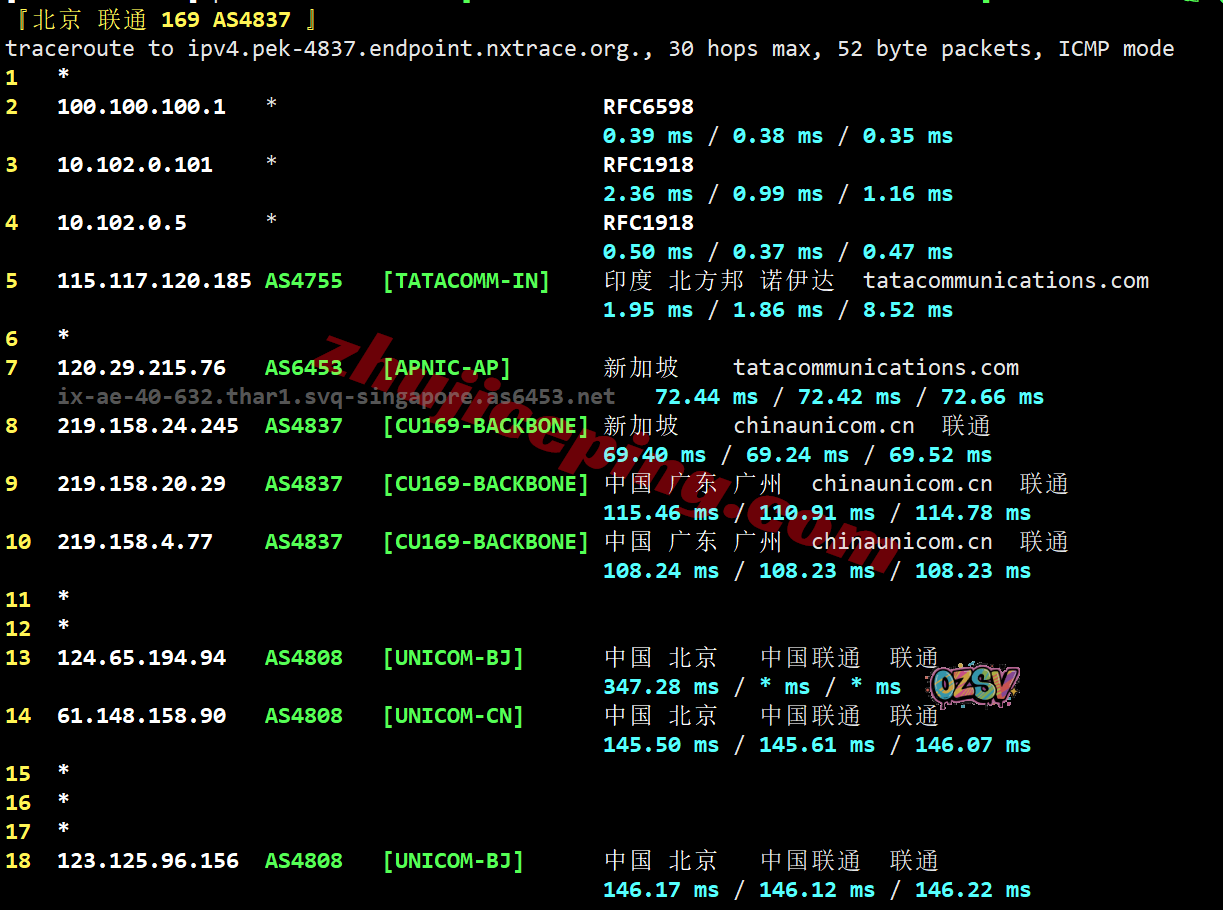 联通去程:直连香港然后接singtel去新加坡接着印度
