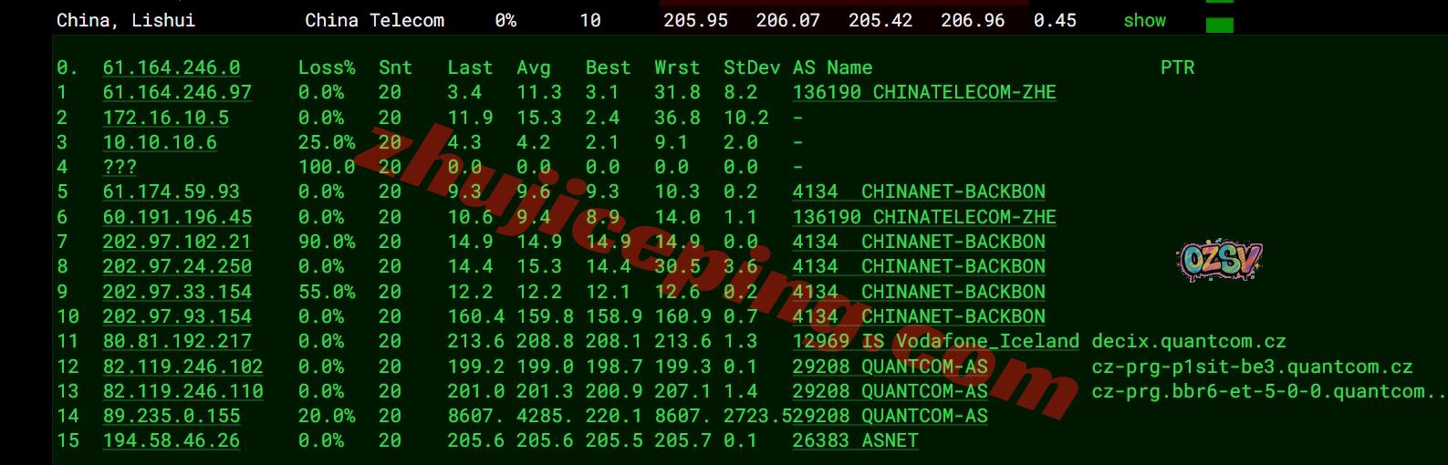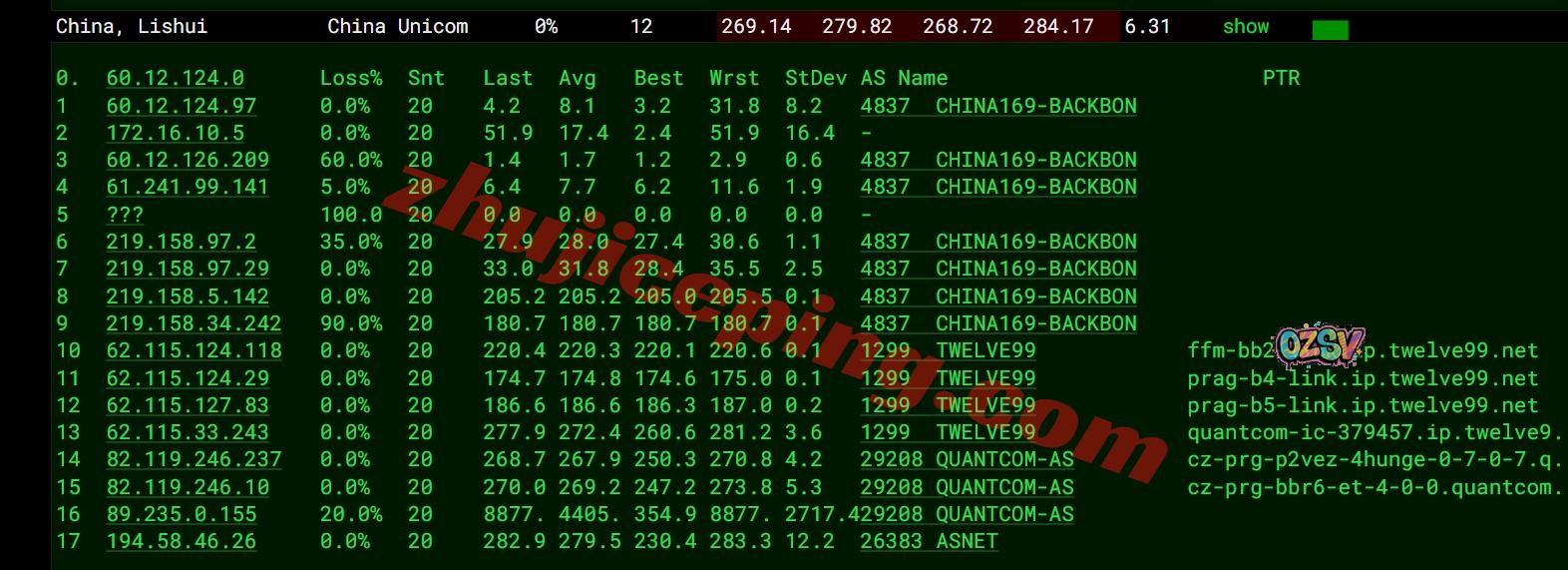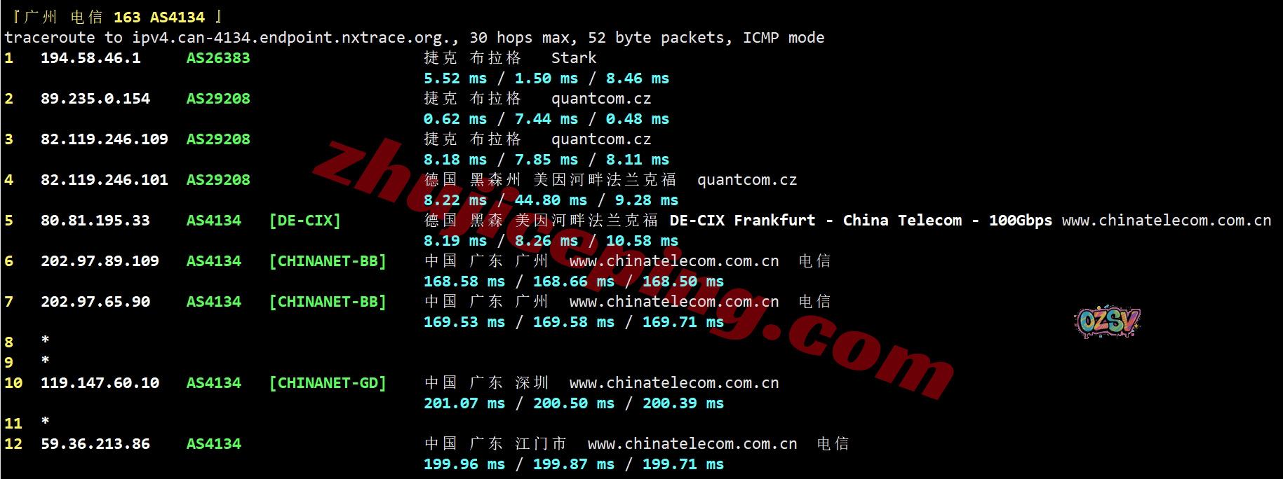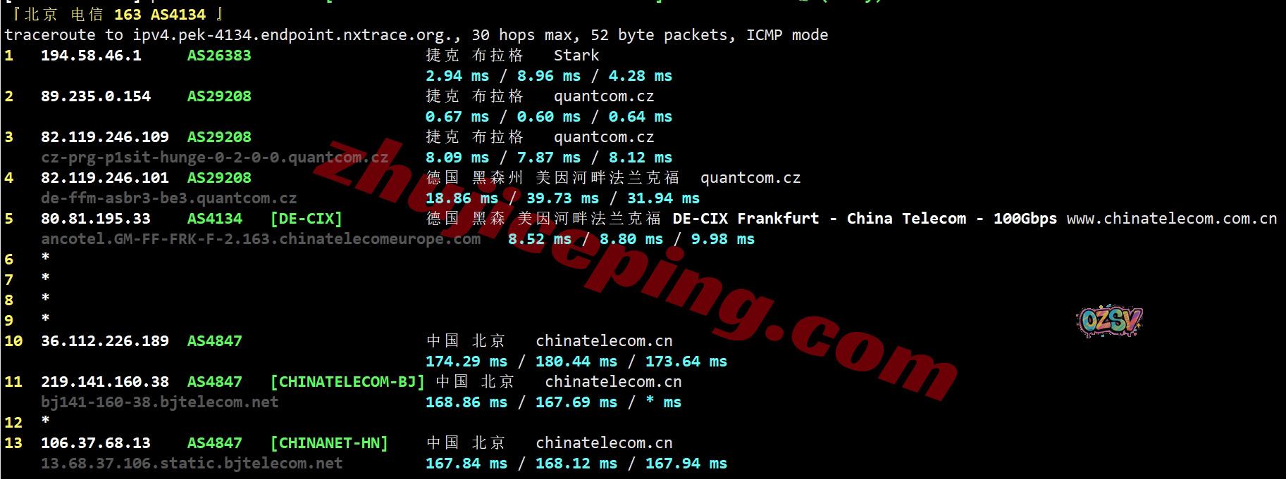 网络方面,去程:三网直连德国或者英国然后国际线路去捷克;