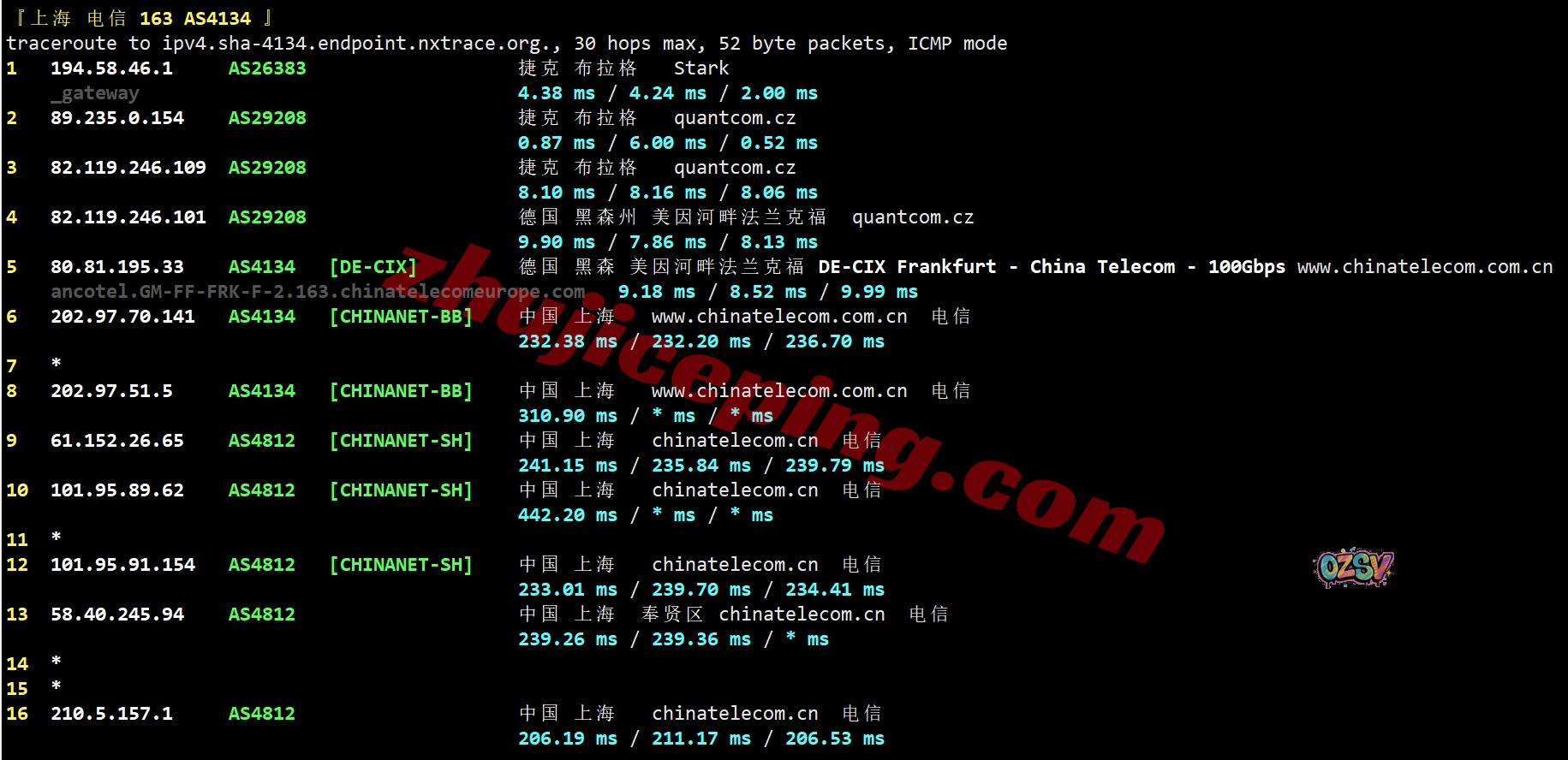 电信去程:直连电信德国法兰克福节点,然后对接vodafone去捷克