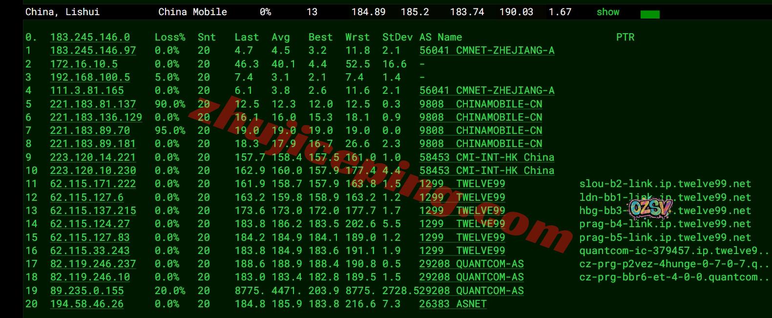 移动去程:直连移动英国伦敦节点然后接telia去德国、捷克
