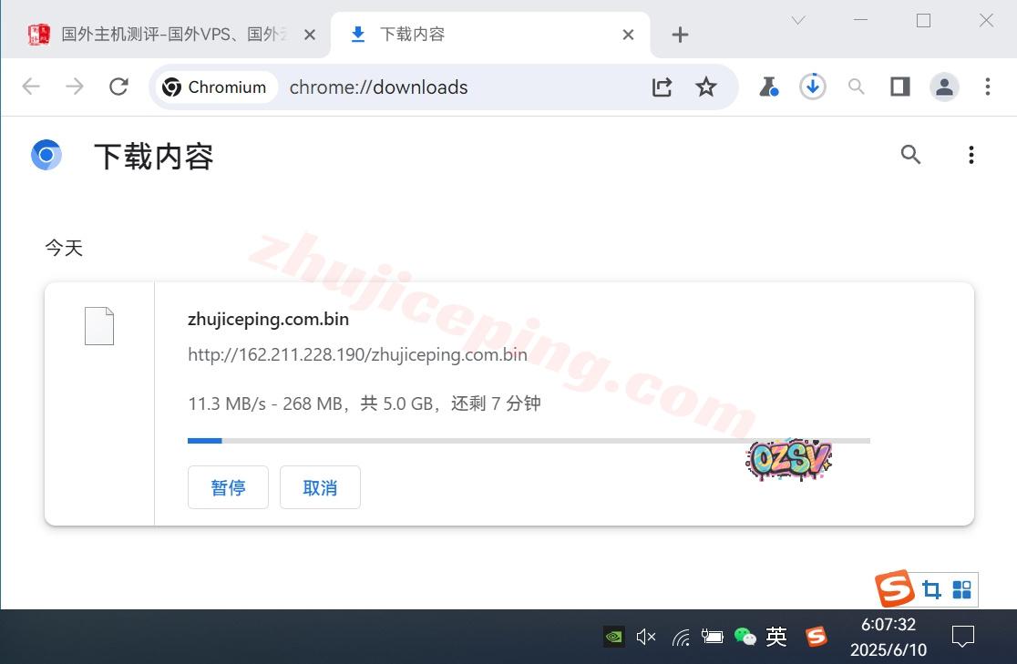 存放在测试VPS上的文件,站长广州联通家宽直接用Chrome下载该文件,大致的下载速度如下所示: