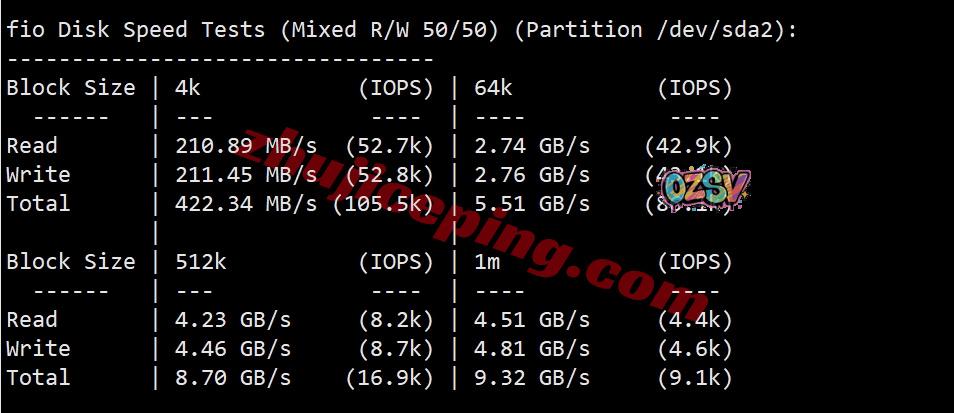 FIO数据读写测试,大致测试结果如下所示,还是很猛的: