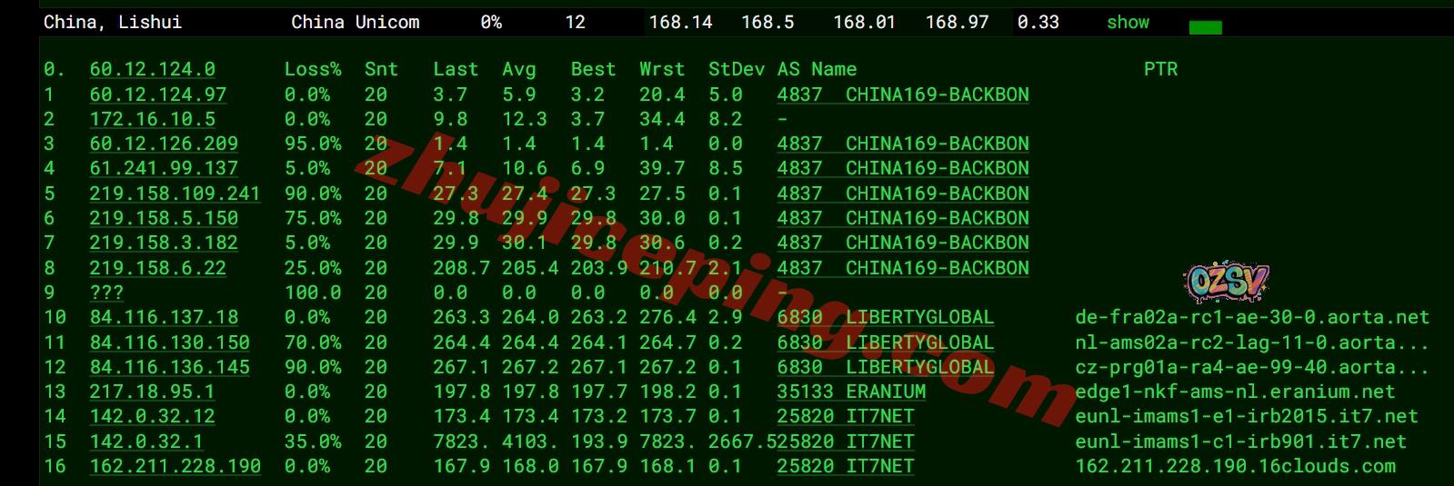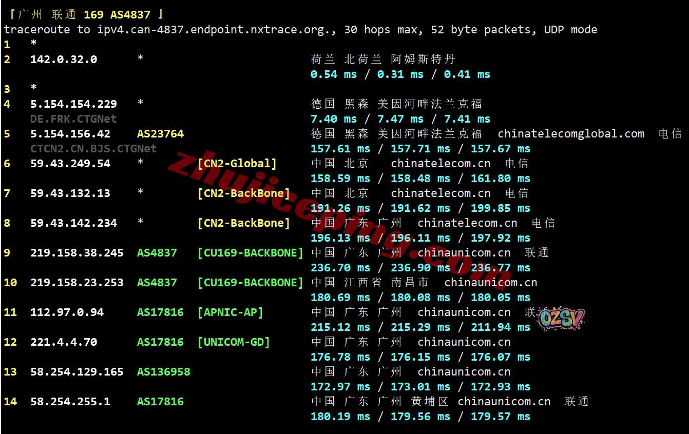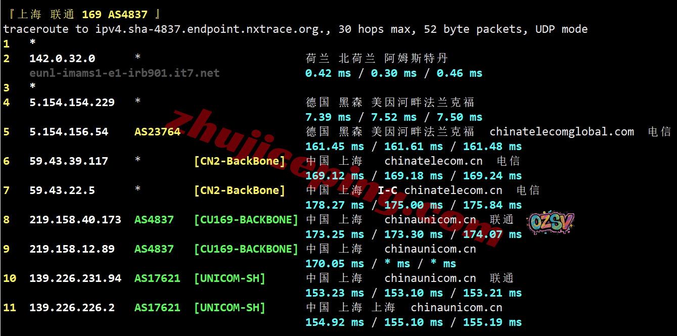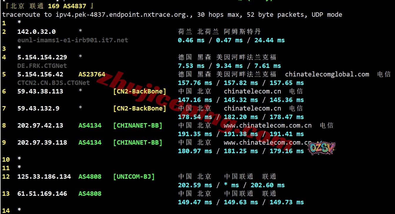 联通去程:直连联通德国法兰克福节点然后接aprta去荷兰