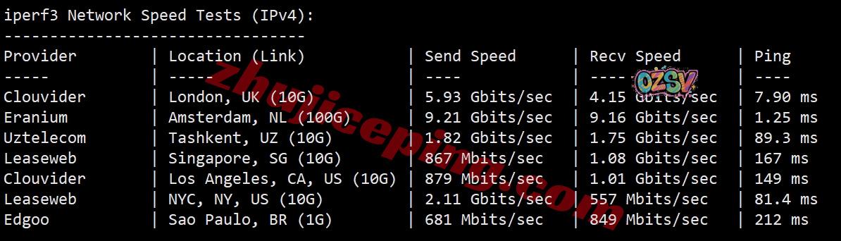 iperf3,几个国际节点的测试数据: