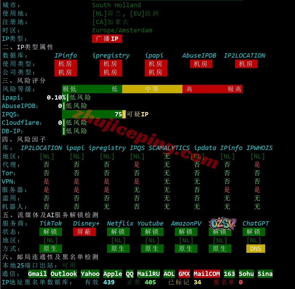 网络方面,由于目前网络还没有完整接入,所以当前就这个情况,三网回程强制CTG/CN2回国,去程的电信CN2、联通和移动只是直连德国和英国然后再去荷兰的。等着联通和移动的高端线路接入后再看看吧!