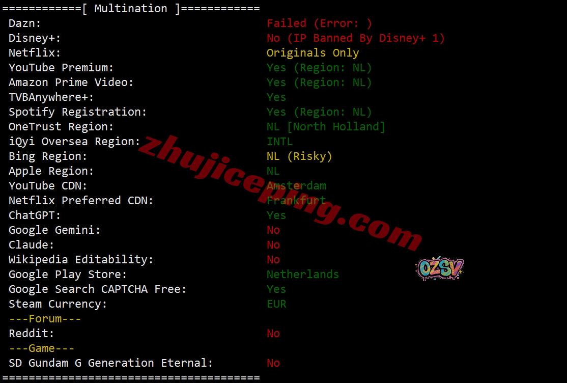部分流媒体解锁测试,大致效果如下: