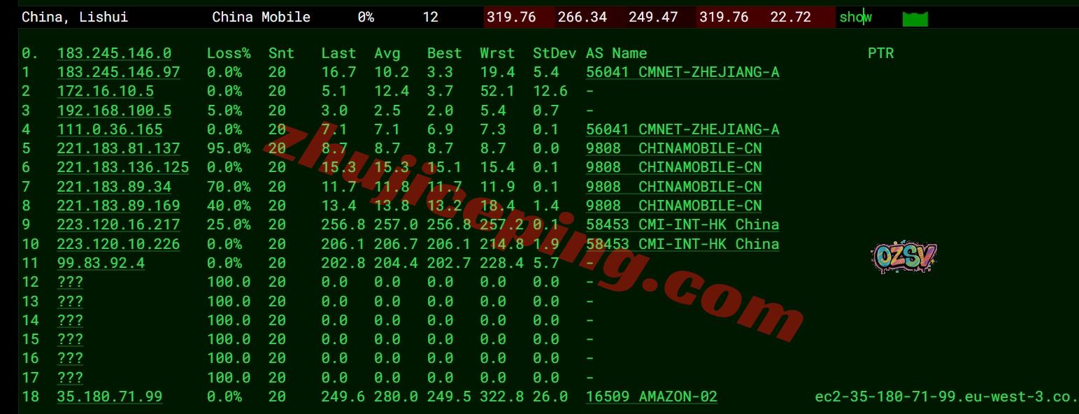 移动去程:直连移动英国伦敦节点 ,然后去法国