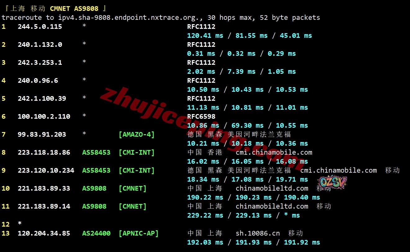 移动回程:内网到德国,从移动德国法兰克福节点直连回国