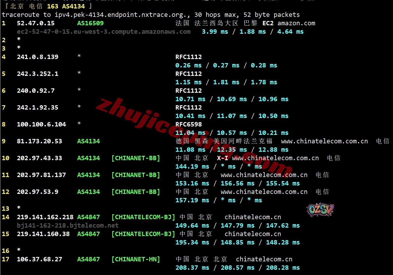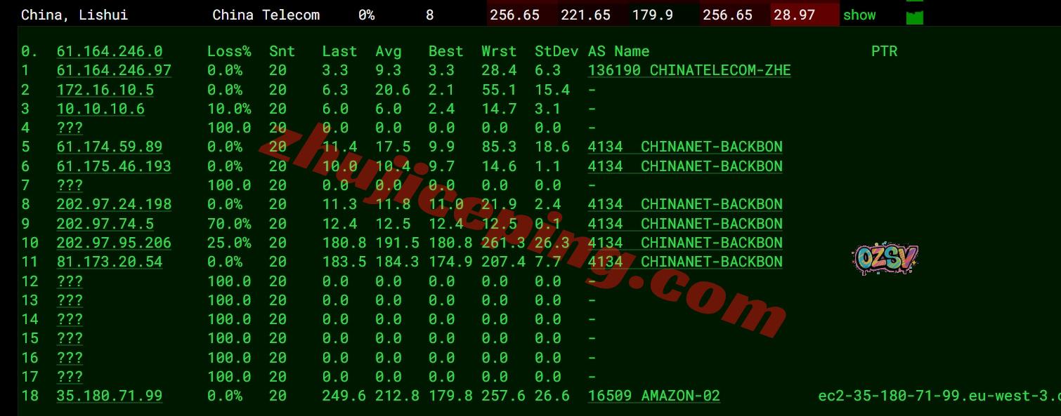 电信去程:直连电信德国法兰克福节点,然后去内网去法国亚马逊机房