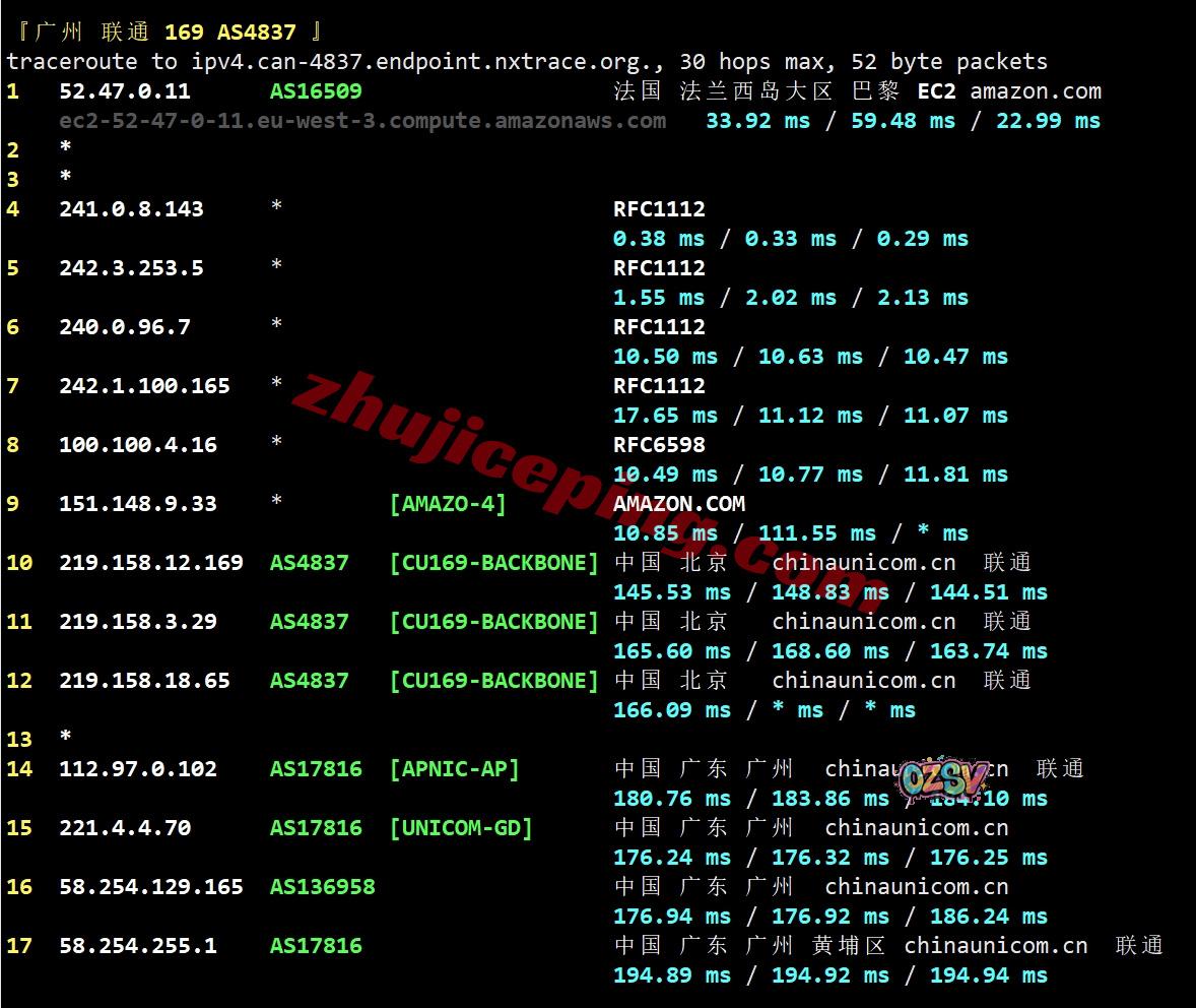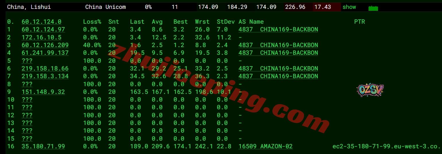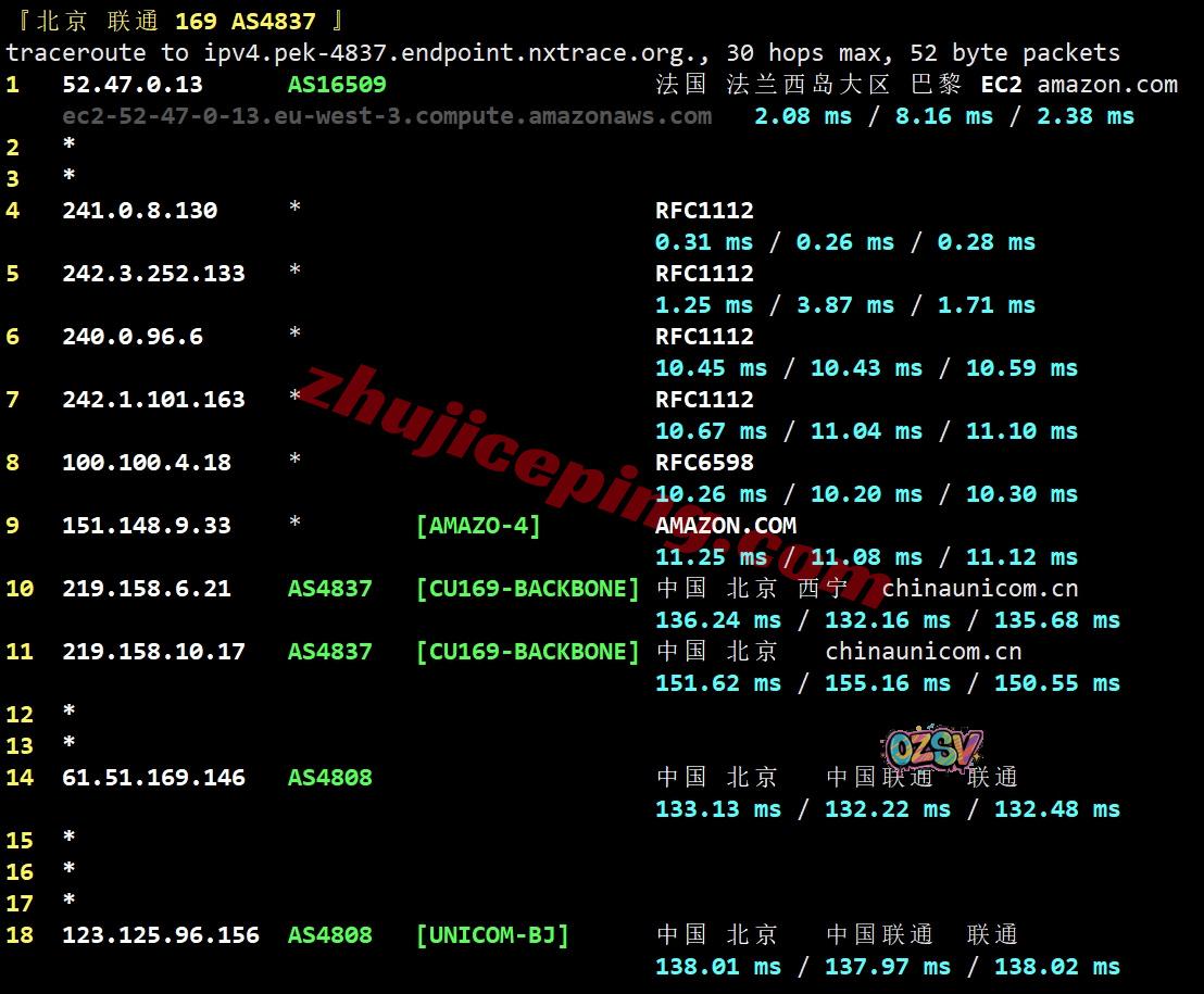 联通去程:先去了美国,然后亚马逊内网再去法国