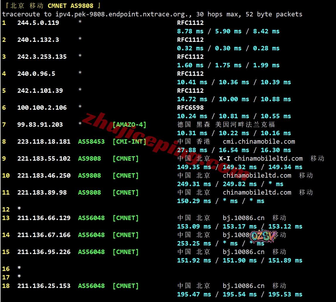 回程都是内网到德国,然后从三网运营商在德国法兰克福的节点直连回国…