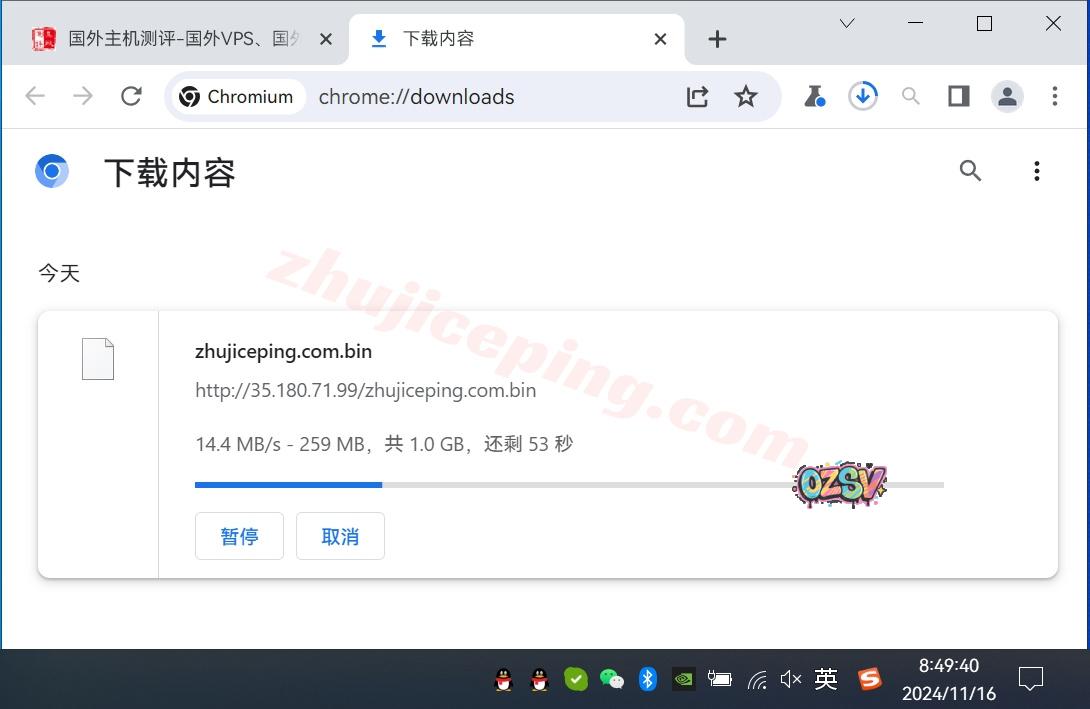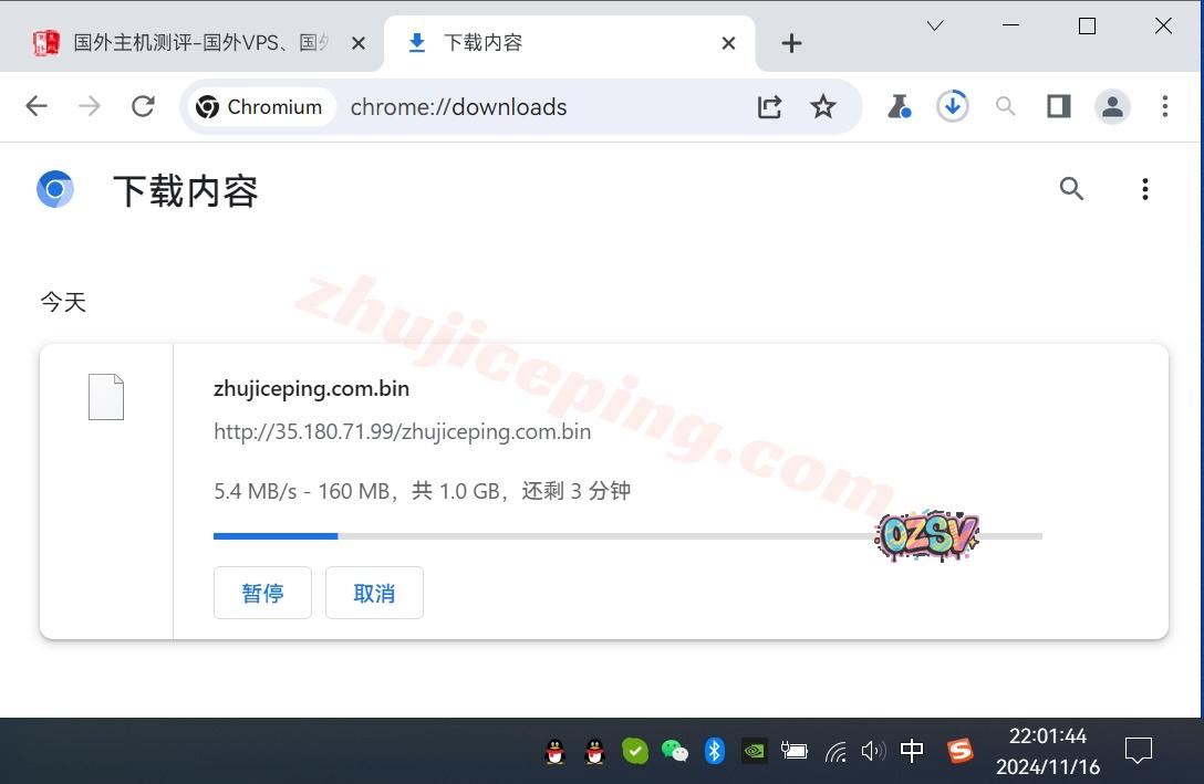 存放在测试云服务器上的文件,站长广州联通家宽直接用Chrome下载该文件,大致的下载速度如下所示: