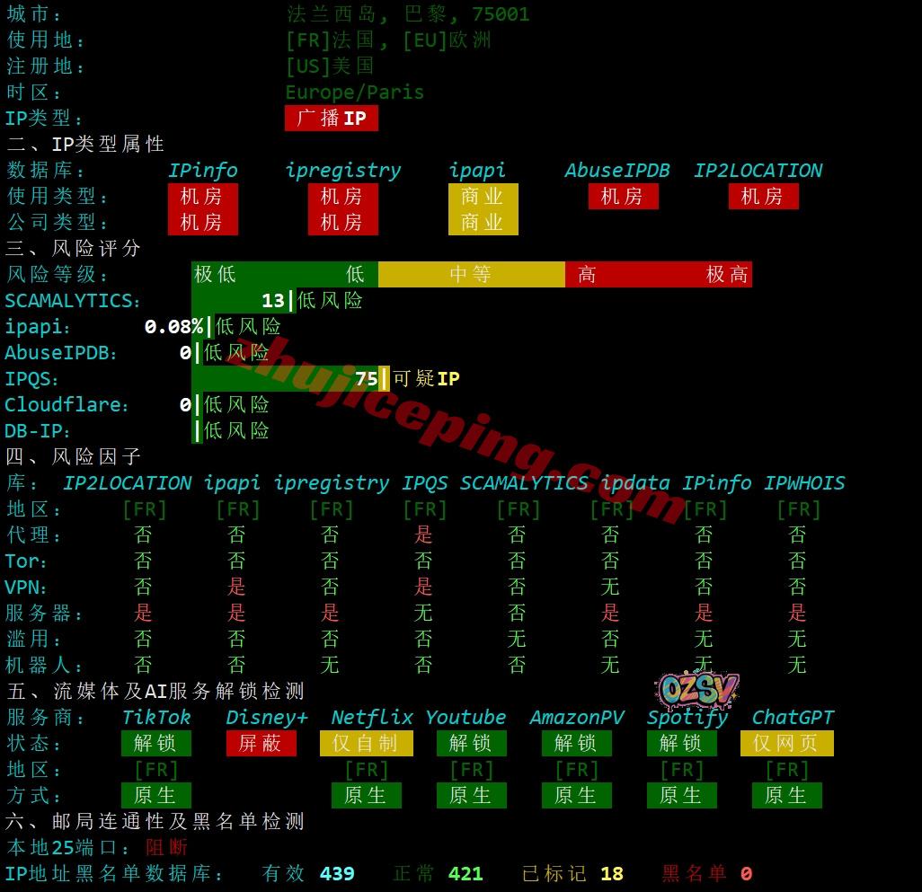 网络方面,电信和移动去程是直连德国或者英国然后去法国,联通绕道了美国再去的法国;