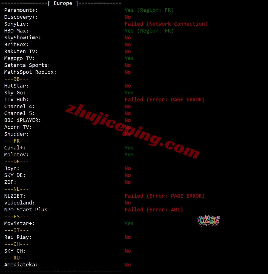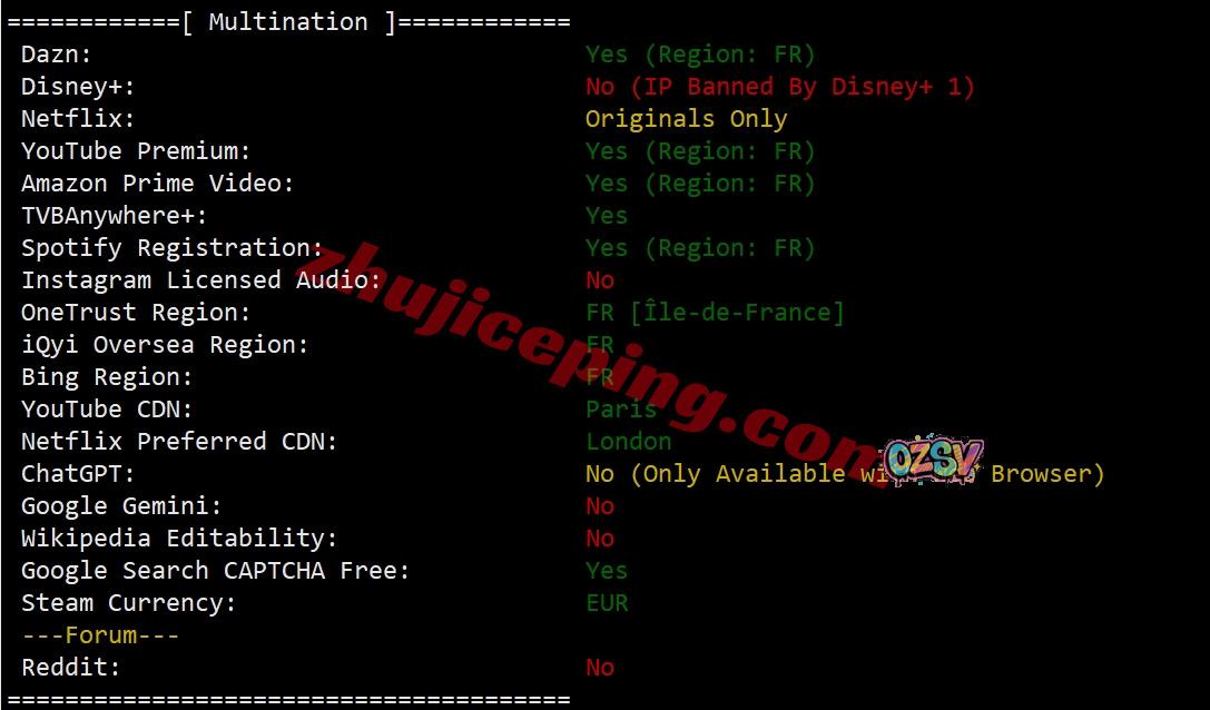 部分流媒体解锁测试: